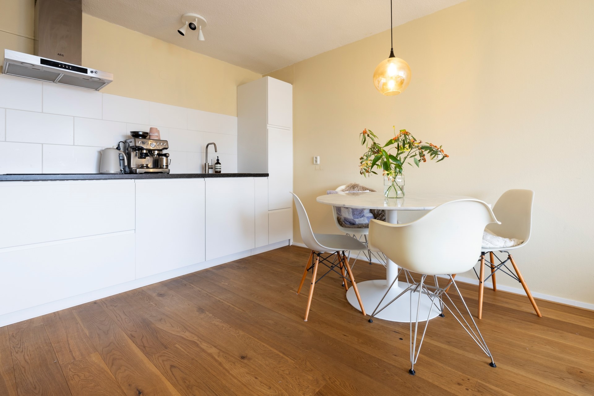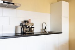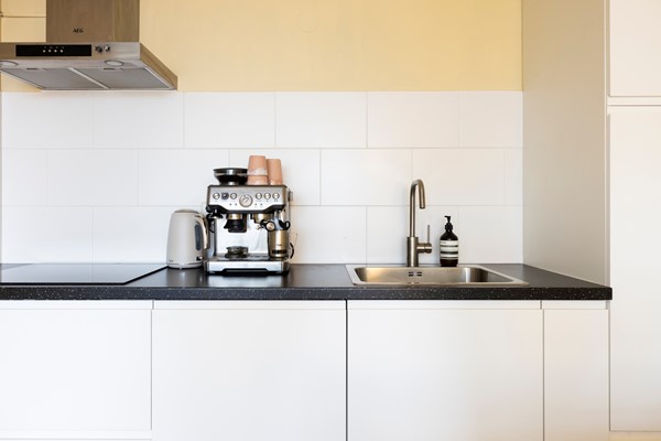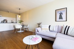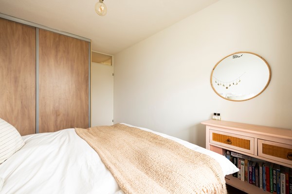 Op de tweede verdieping kom je via je eigen voordeur in je hal. Aan de rechterzijde is de nette badkamer te vinden. De woonkamer met de moderne open keuken is een heerlijk lichte ruimte. De ruime slaapkamer biedt ruimte aan een tweepersoonsbed, heeft vaste kledingkasten en heeft aangrenzend het balkon met vrij uitzicht voor veel lichtinval en privacy.