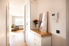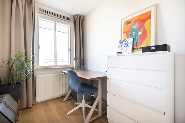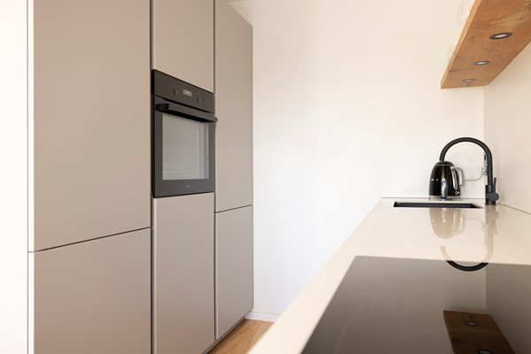The apartment has been thoroughly renovated and now even has energy label A because, for example, all walls and ceilings have been additionally insulated! Not only energy-efficient, but also excellent sound insulation from neighbours and outside noise. It is located on the third floor, accessible by lift or stairs. The beautiful modern kitchen with extra-large fridge and freezer, induction hob and dishwasher has a practical layout and is a lovely place to prepare your meals. The entire apartment has a real oak floor. The bathroom is very neat and has comfortable underfloor heating. There are two good-sized bedrooms. The balcony faces south and offers a beautiful view over the old city centre. A parking permit for Haarlem city centre is available immediately and the owners’ association (VvE) also rents out parking spaces on the secured rear courtyard.
