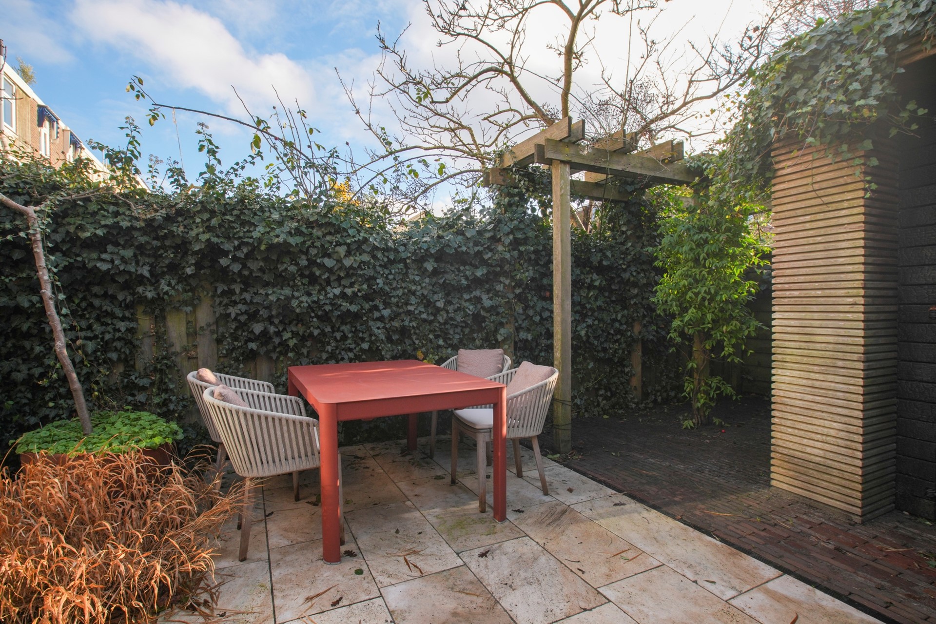 • End in a row house – Southwest-facing backyard;