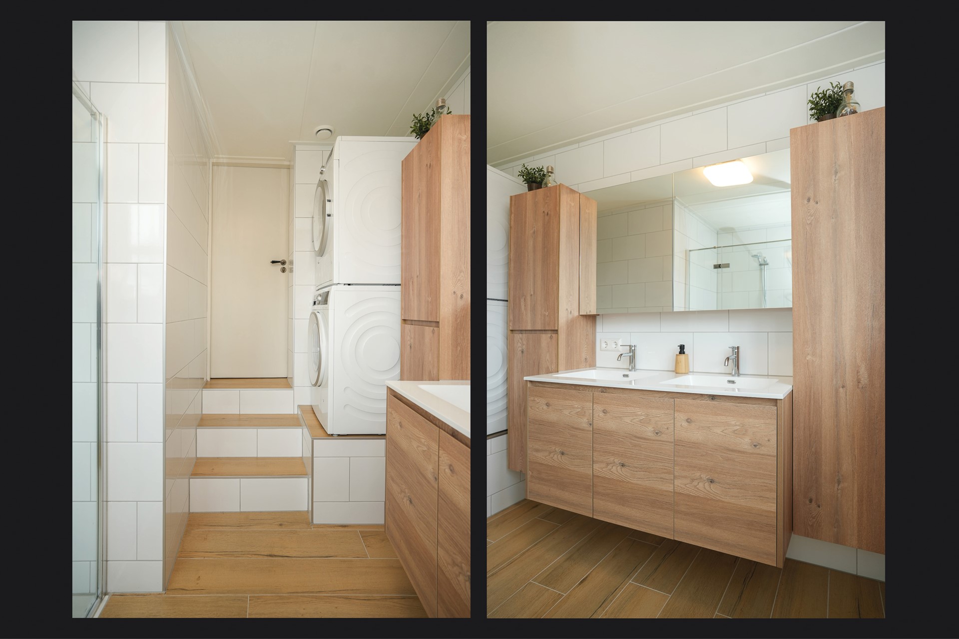 Bathroom facilities Double sink, Walkin shower, Washbasin furniture, Washingmachine connection