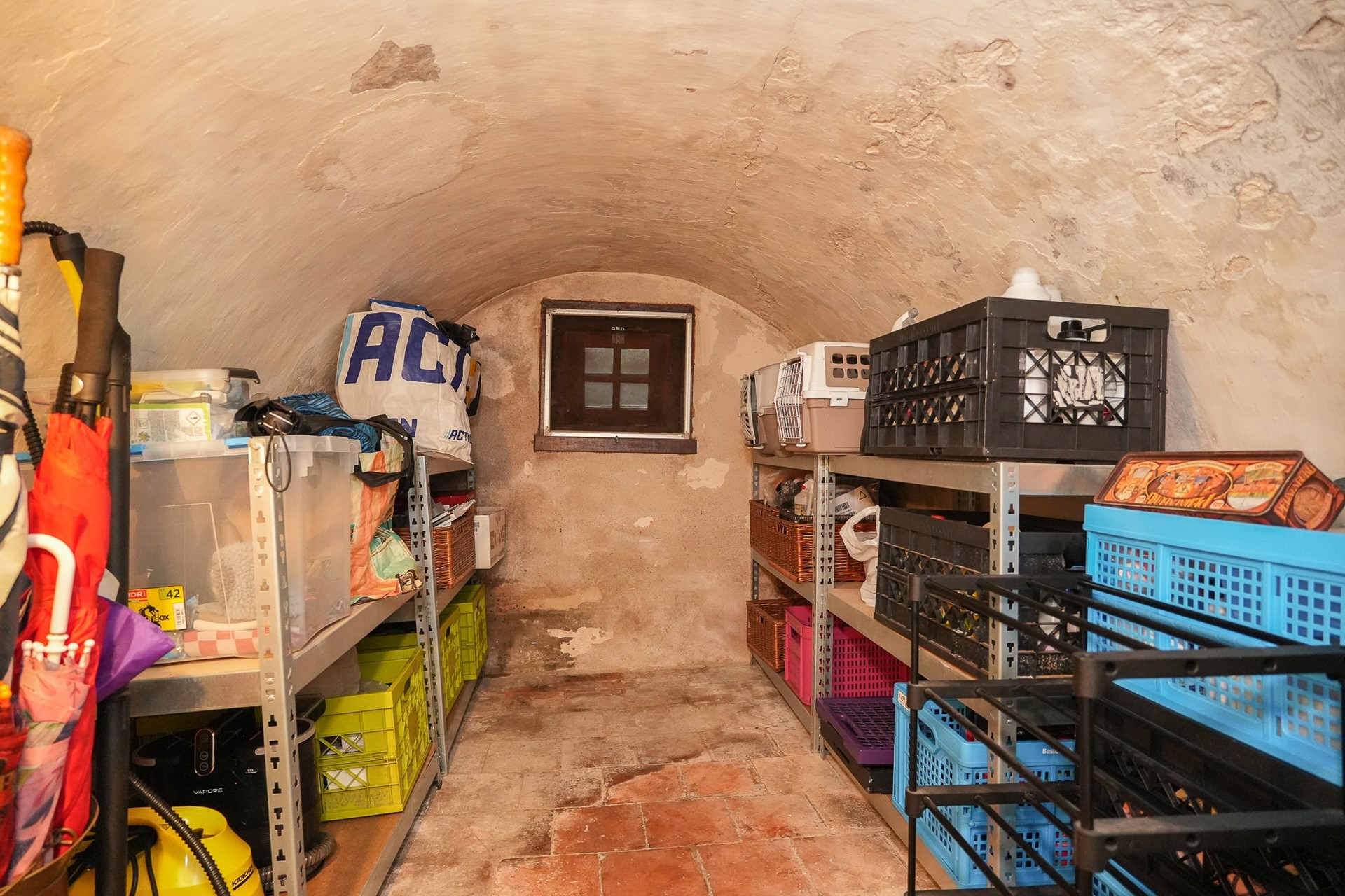 Vanuit de hal (laagste niveau) bereik je de kelder – een praktische provisieruimte van circa 3 m².