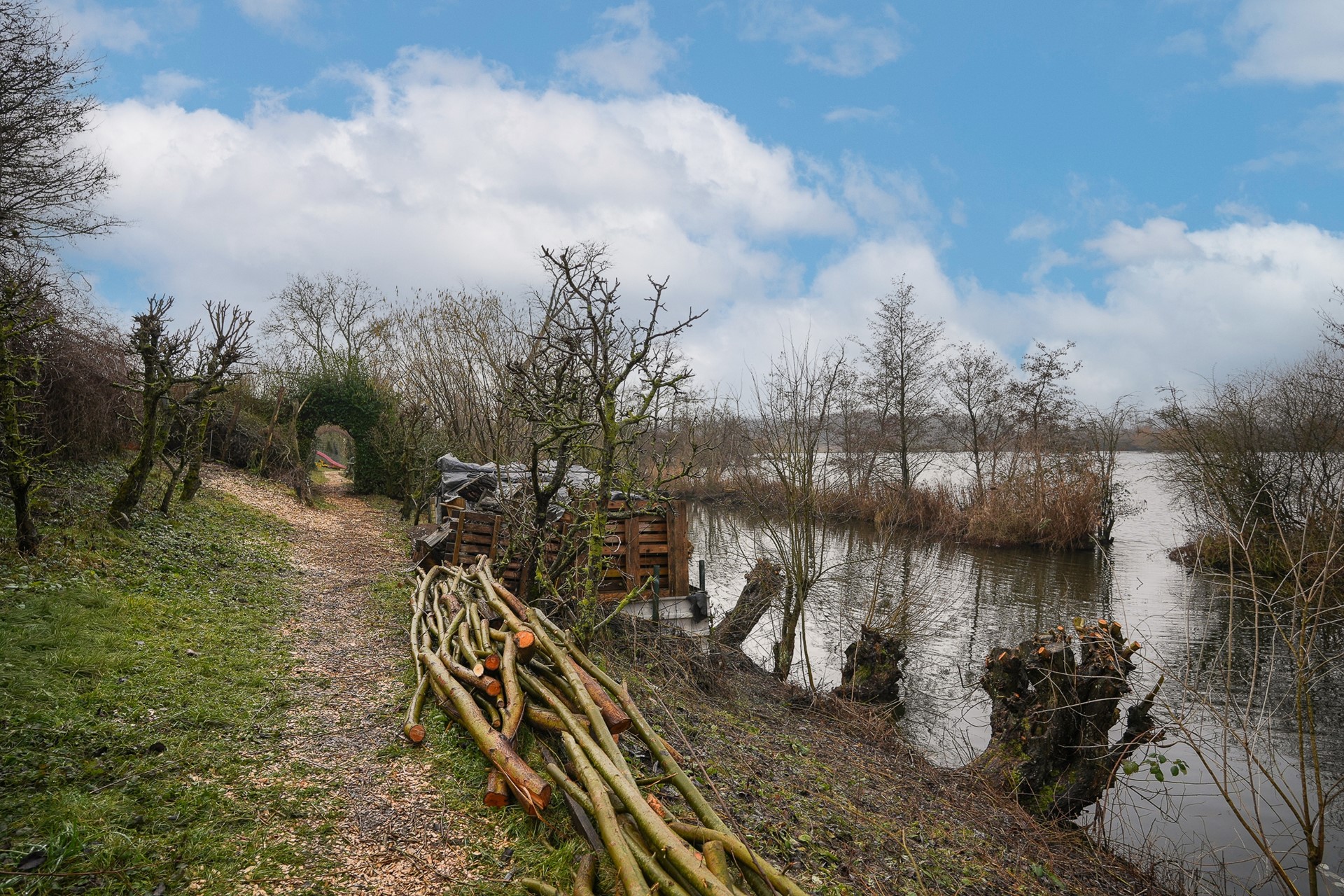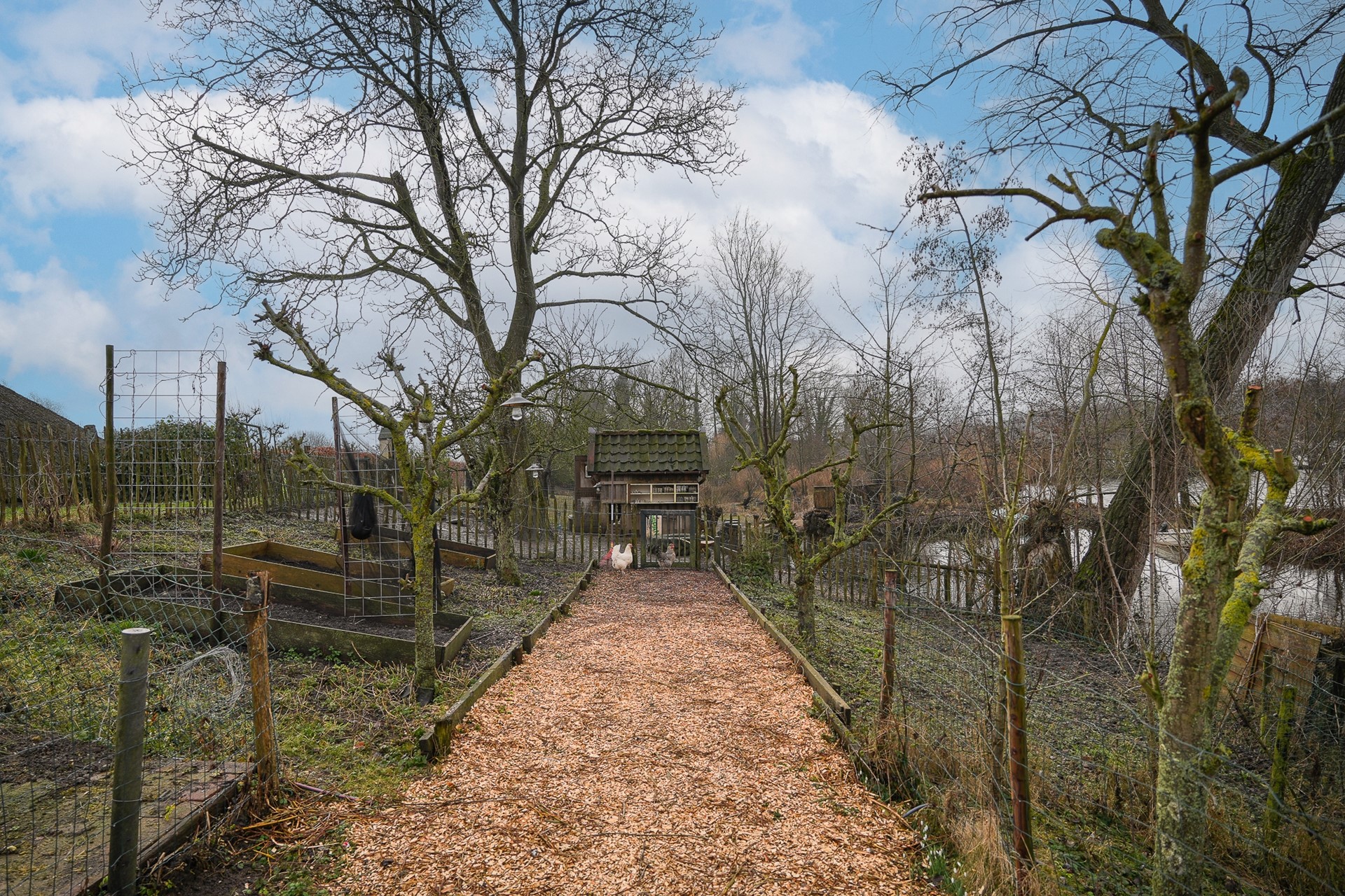 Aan de overzijde van de dijk beschik je over circa 1.000 m² extra grond. Dit perceel grenst direct aan het water en biedt tal van mogelijkheden. Hier kun je denken aan het houden van kippen of kleinvee, het aanleggen van een boomgaard of een moestuin. Er is zelfs een gedeelte eigen water aanwezig.