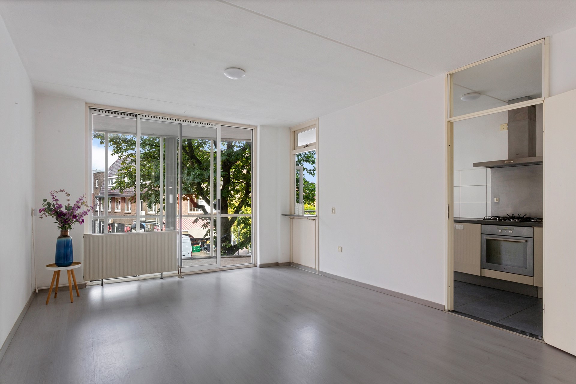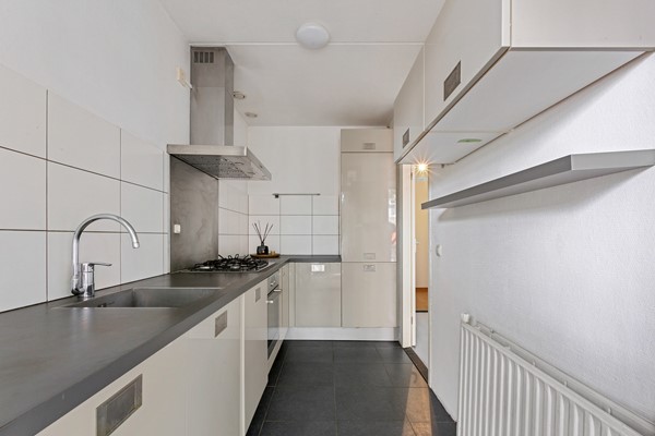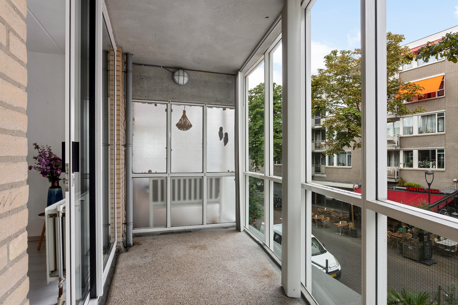 Entree met audiofoon, hal met toilet en grote bergkast met aansluiting voor wasmachine en droger. Tweede kast met opstelling van de cv-ketel (Bosch). De gezellige woon-/eetkamer heeft een doorgang naar een glazen ‘serre’ met veel lichtinval door de hoge ramen van vloer tot plafond. Hier kunt u genieten van het langslopend winkelend publiek. Via de woonkamer bereikt u de moderne keuken voorzien van diverse inbouwapparatuur (vaatwasser, gaskookplaat, afzuigkap, koel/vriescombinatie en oven). Zowel vanuit de serre als vanuit de keuken is het beschutte balkon bereikbaar. Het appartement beschikt over 2 in grootte variërende slaapkamers, beiden gelegen aan de rustige achterzijde. De badkamer is enigszins gedateerd maar is royaal van formaat en beschikt over een douche en wastafel. Het appartement is grotendeels voorzien van een nette laminaatvloer. In de onderbouw is een berging met elektra aanwezig. Gezellig en keurig onderhouden appartement op een leuke locatie nabij alle faciliteiten!