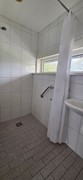 De nette badkamer uit 2011 bestaat uit een douchehoek en vaste wastafel.