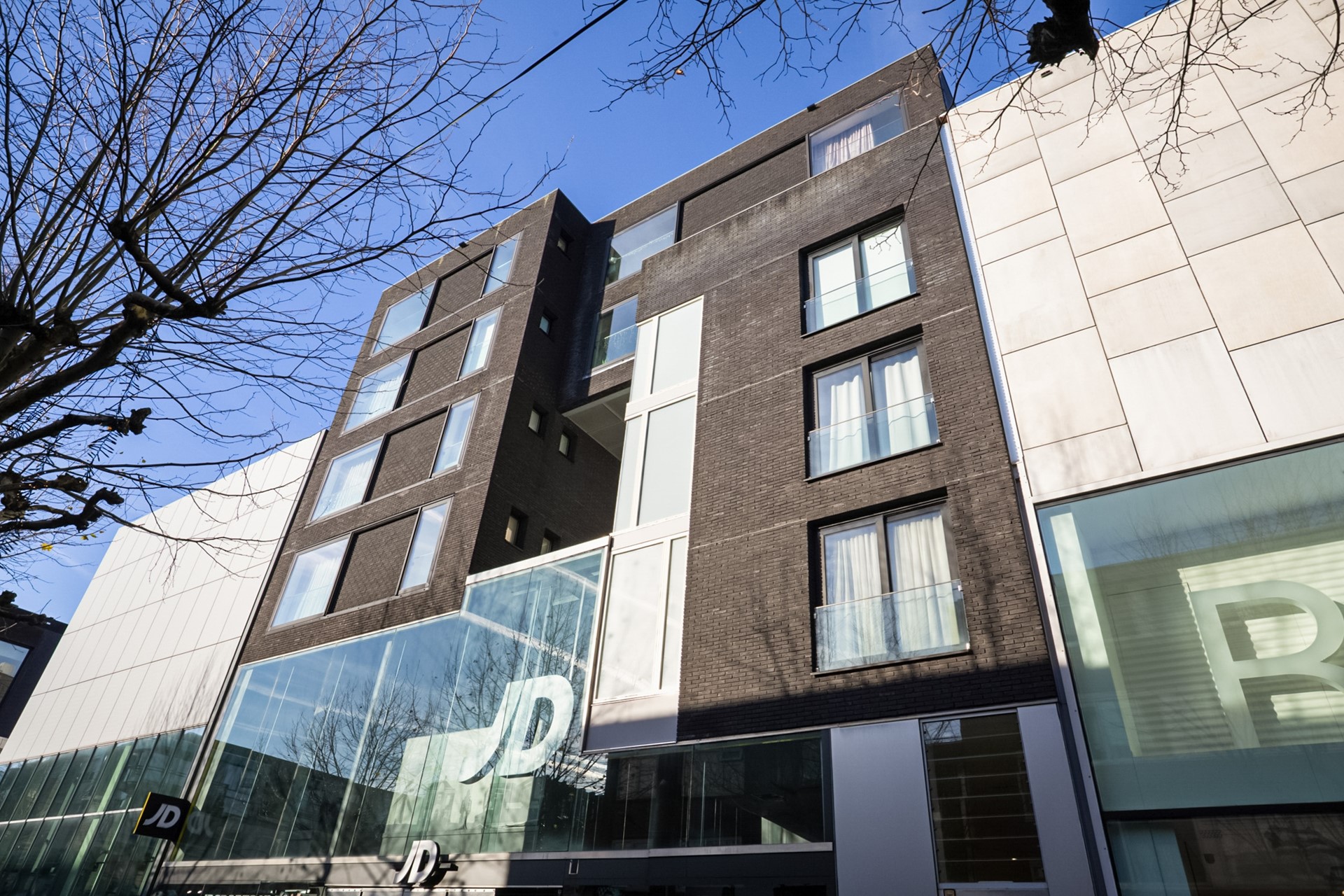 Bij aankomst betreedt u de representatieve entree op de begane grond, voorzien van een modern intercomsysteem. Via de liftinstallatie of het trappenhuis bereikt u comfortabel de vijfde verdieping, waar het recent geplaatste glazen atrium direct een elegante en lichte indruk achterlaat.