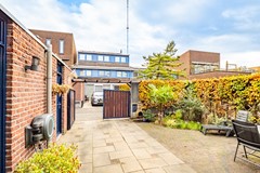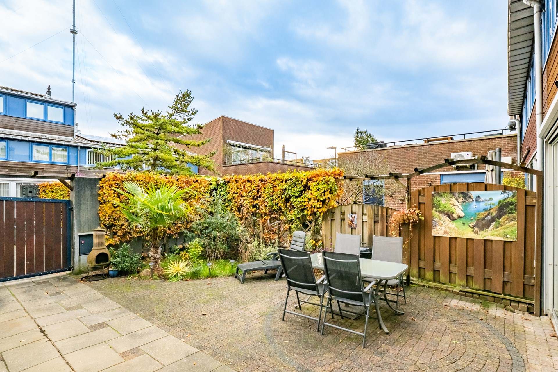 En dan die tuin op het oosten: groot genoeg voor een loungeset, barbecue, trampoline of moestuin — wat maar bij jouw leven past. Dankzij de dubbele openslaande tuindeuren kun je je motor of auto gewoon op eigen terrein parkeren.