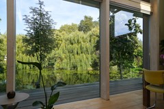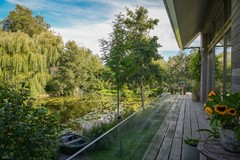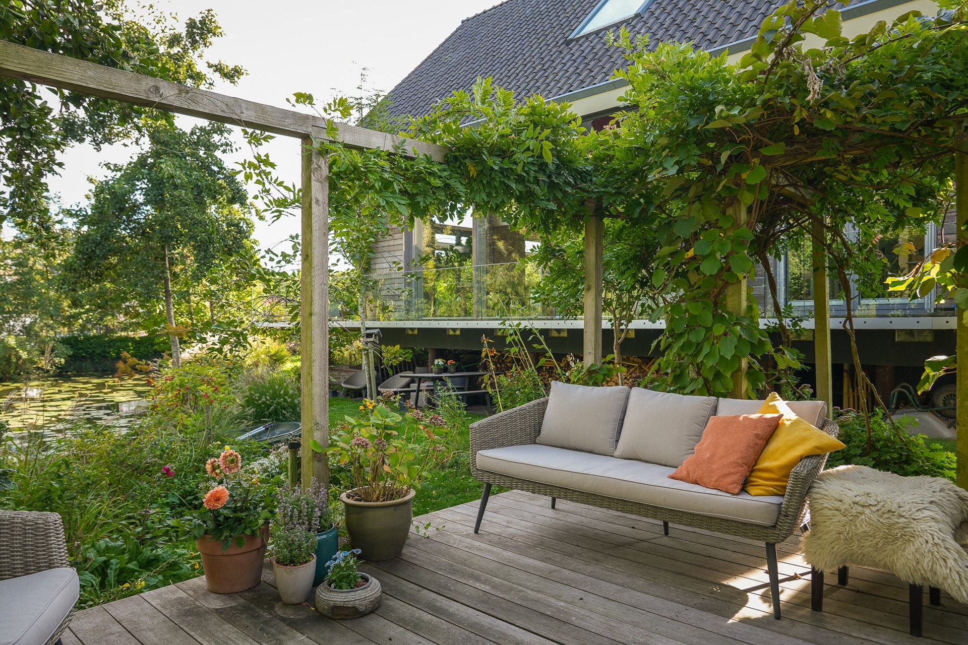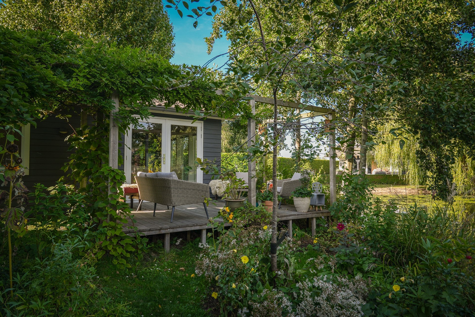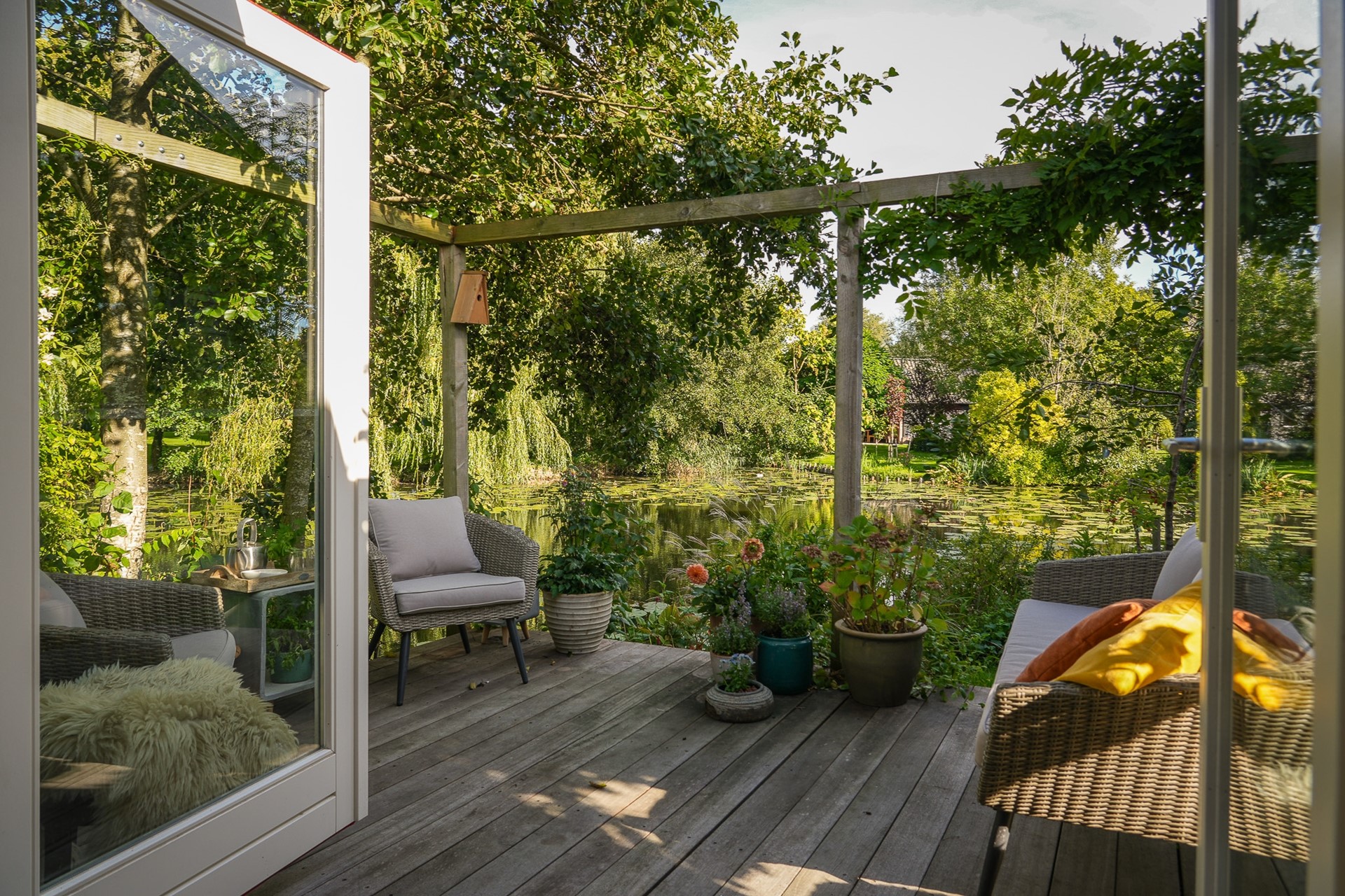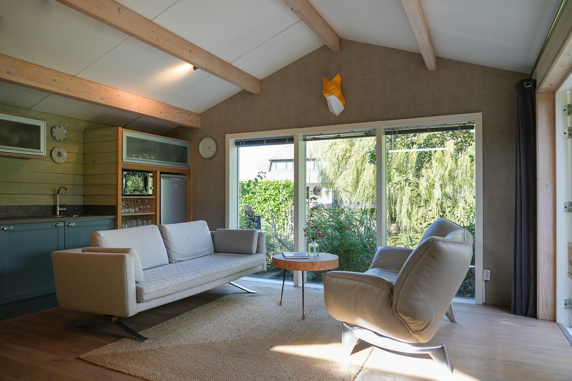 Wat het gastenverblijf bijzonder maakt is het vlonderterras direct aan het water, met een pergola waar je tot in de late uurtjes kunt zitten. Dit gebouw is ook zeer geschikt als kantoor/praktijkruimte en bovendien geschikt te maken als mantelzorgwoning – daarvoor is een omgevingsvergunning nodig, maar de basis is er.