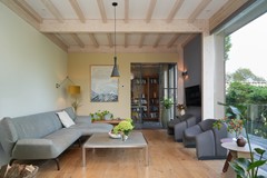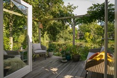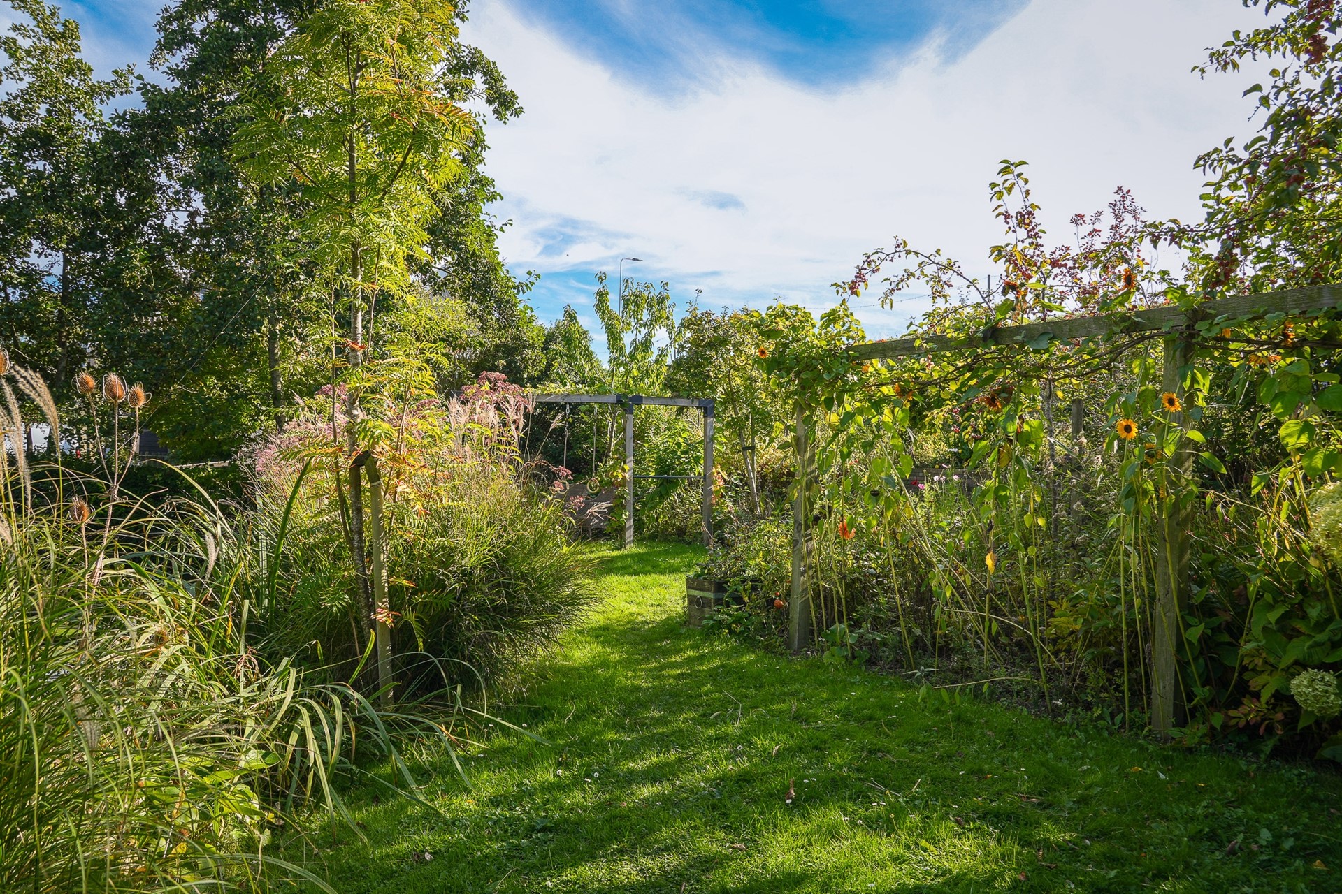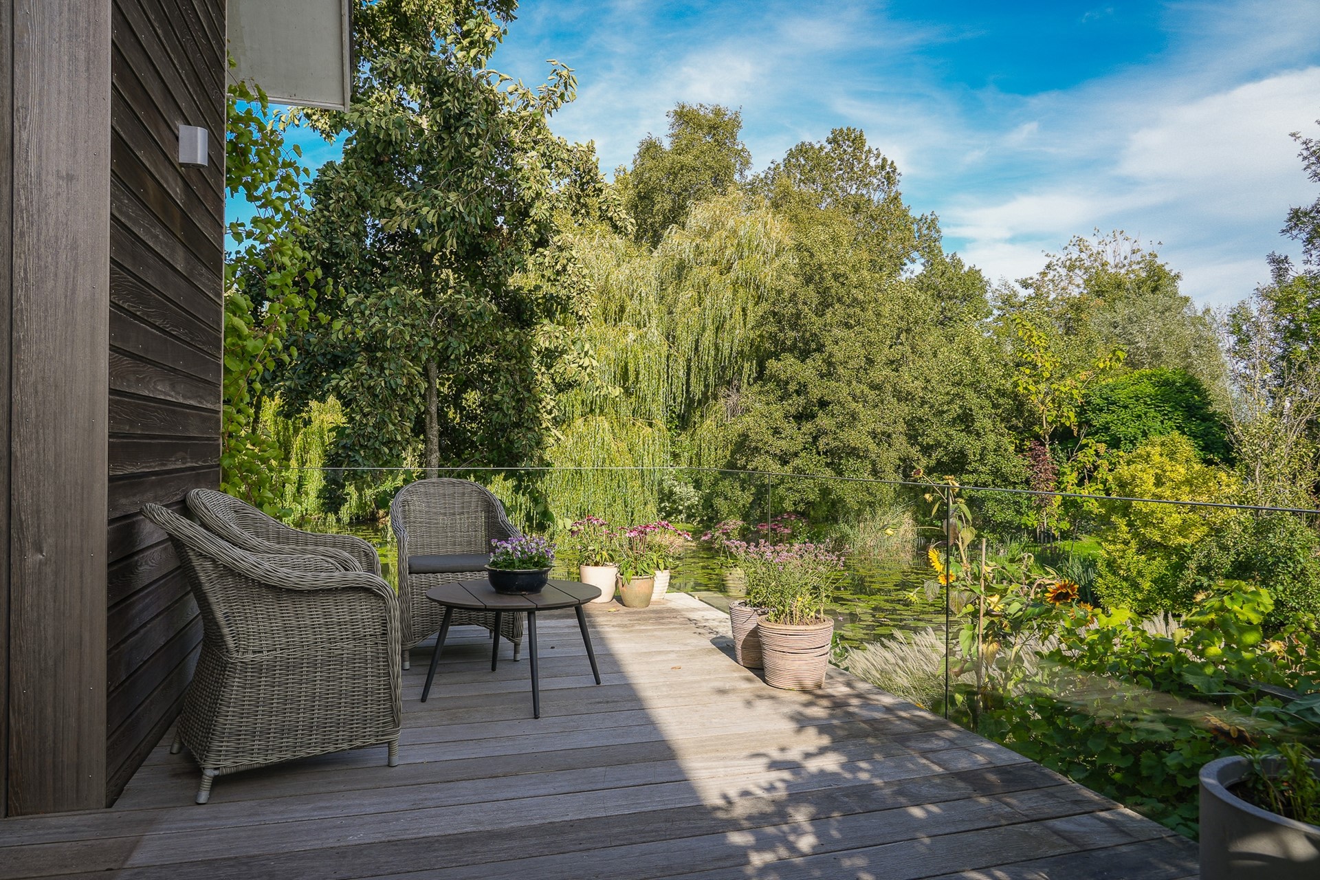 Deze moderne woning uit 2016 is volledig 0-op-de-meter gebouwd en wordt omringd door een tuin zoals je die zelden ziet: weelderig, natuurlijk, met borders in de stijl van Piet Oudolf en een prachtige hardhouten vlonder rondom het huis. Verschillende zitjes en doorkijkjes zorgen ervoor dat je altijd een plek vindt om stil te genieten. Of het nu in de ochtendzon is met een kop koffie of 's avonds met het geluid van kwakende kikkers op de achtergrond. Het moderne en volledig geisoleerde bijgebouw is perfect te gebruiken als gastenverblijf of kantoor aan huis.