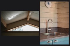 Achter in de tuin ligt het volledig geïsoleerde gastenverblijf/kantoor aan huis. Deze ruimte biedt een open woonkamer met keuken en slaapkamer in één, en een aparte badkamer met douche, toilet en wastafel. Verwarming vindt plaats via vloerverwarming, gekoppeld aan de hoofdinstallatie.