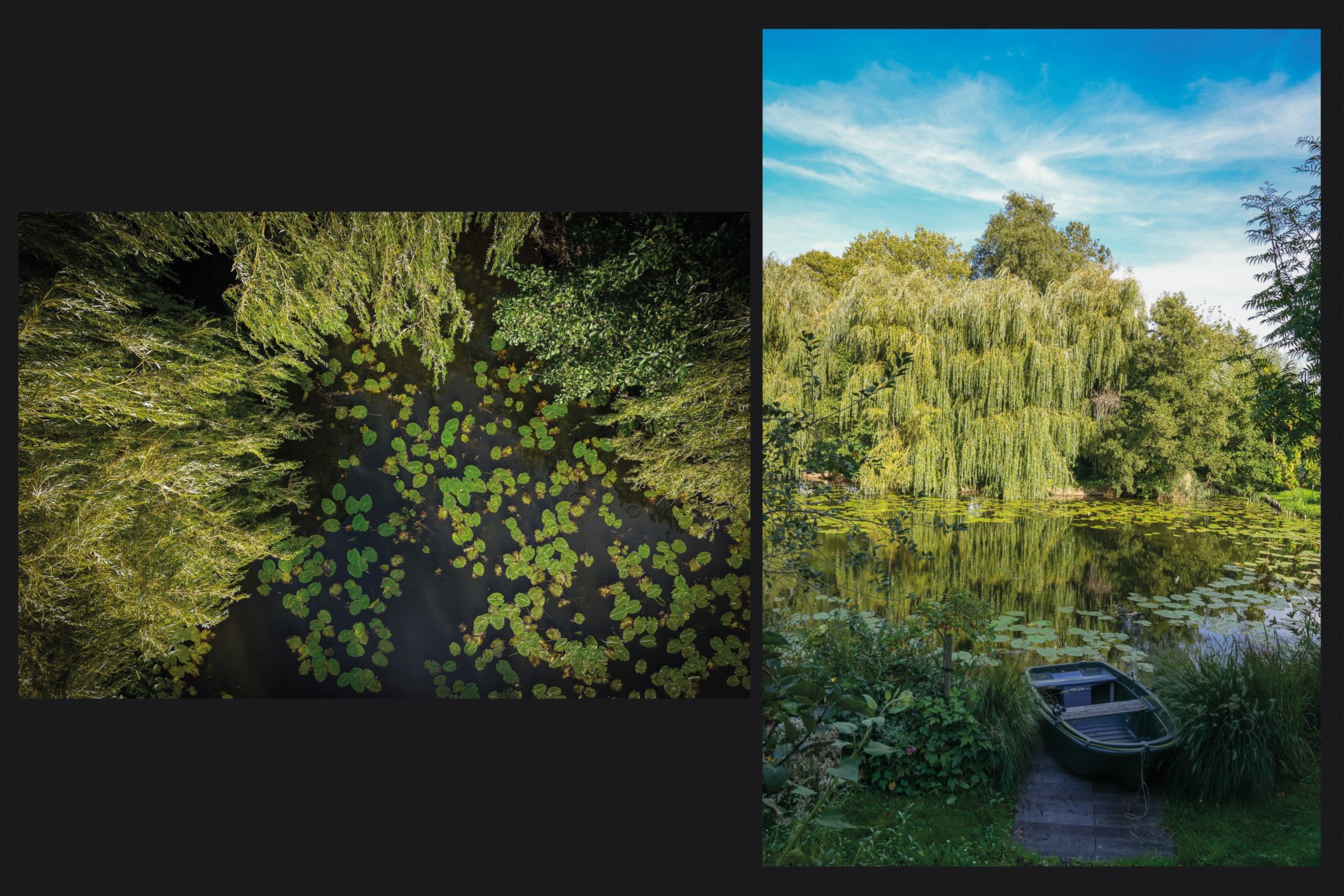 De tuin is een lust voor het oog én de ziel. Volwassen bomen, fruitbomen, kleurrijke borders en doordachte zichtlijnen maken het geheel tot een beleving. Alles is ontworpen met oog voor biodiversiteit, water en ruimte. Aan de woningzijde is een oprit met laadpaal en plek voor twee auto’s. Aan de andere kant is nog een extra parkeerplaats.