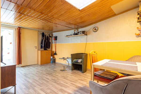 De tuinkamer vormt een multifunctionele ruimte met een laminaatvloer en kan naar wens worden ingericht, bijvoorbeeld als extra zitruimte, hobbyruimte of werkplek. Dankzij het dakraam valt er aangenaam daglicht binnen. Vanuit de tuinkamer is er toegang tot de achtertuin en een berging, wat deze ruimte extra functioneel maakt.