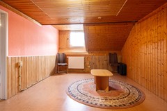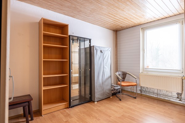 Vanuit deze ruimte is er toegang tot de derde slaapkamer. Deze kamer is eveneens voorzien van een novilonvloer, een dakkapel en een radiator, wat zorgt voor voldoende daglicht en een aangename sfeer. De kamer is geschikt als extra slaapkamer, maar kan ook naar wens worden ingericht, bijvoorbeeld als logeerkamer of thuiswerkplek.