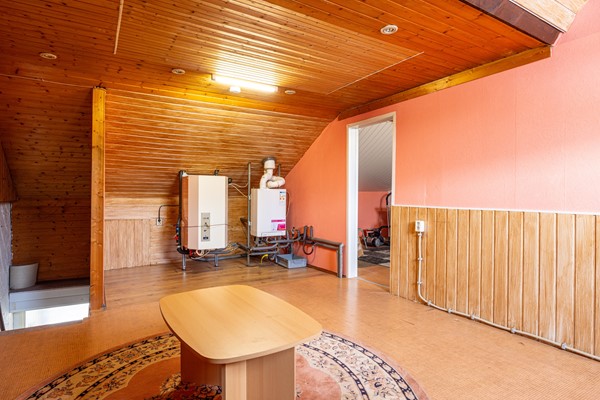 De bergingsruimte is afgewerkt met een novilonvloer en biedt plaats aan de cv-installatie en de zonneboiler. Dankzij de aanwezige dakkapel valt er prettig daglicht binnen. De ruimte is bovendien voorzien van een radiator. Momenteel is deze ruimte in gebruik als berging, maar na aanpassingen kan zij ook uitstekend functioneren als bijvoorbeeld werkruimte of hobbykamer.