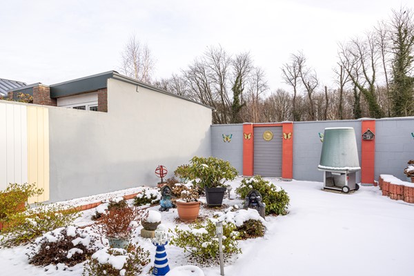 De achtertuin is volledig omheind en biedt een prettige, beschutte buitenruimte met veel privacy. De tuin is overzichtelijk aangelegd en voorzien van groenvoorzieningen, wat zorgt voor een verzorgde en onderhoudsvriendelijke uitstraling.