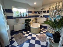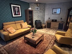 Schitterende eengezinswoning met garage, aanbouw, kelder, zolder, woonkamer met houtkachel, leefkeuken met aanbouwkeuken en pelletkachel, 3 slaapkamers, grote badkamer met vloerverwarming, ligbad, inloopdouche en hangtoilet, wasruimte, lange oprit naar garage en diepe achtertuin met overkapping en prachtig uitzicht op de schacht van Nullland.