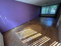 Woonkamer 8,65 x 3,55 met parketvloer en deur naar balkon 2,50 x 1,70.