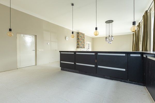 Aansluitend ligt de keuken met natuurstenen werkblad, inductiekookplaat, afzuigkap, oven, vaatwasser en spoelbak. Een ideale plek voor een royale eettafel en lange avonden tafelen.