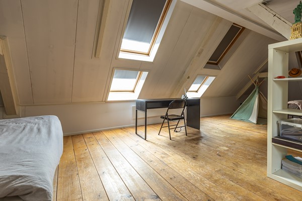 De vaste trap leidt naar de indrukwekkende zolderverdieping. De prachtige houten balkconstructie geeft deze verdieping direct sfeer. De voorzolder biedt volop ruimte voor opbergen, een werkplek of hobbyruimte.
