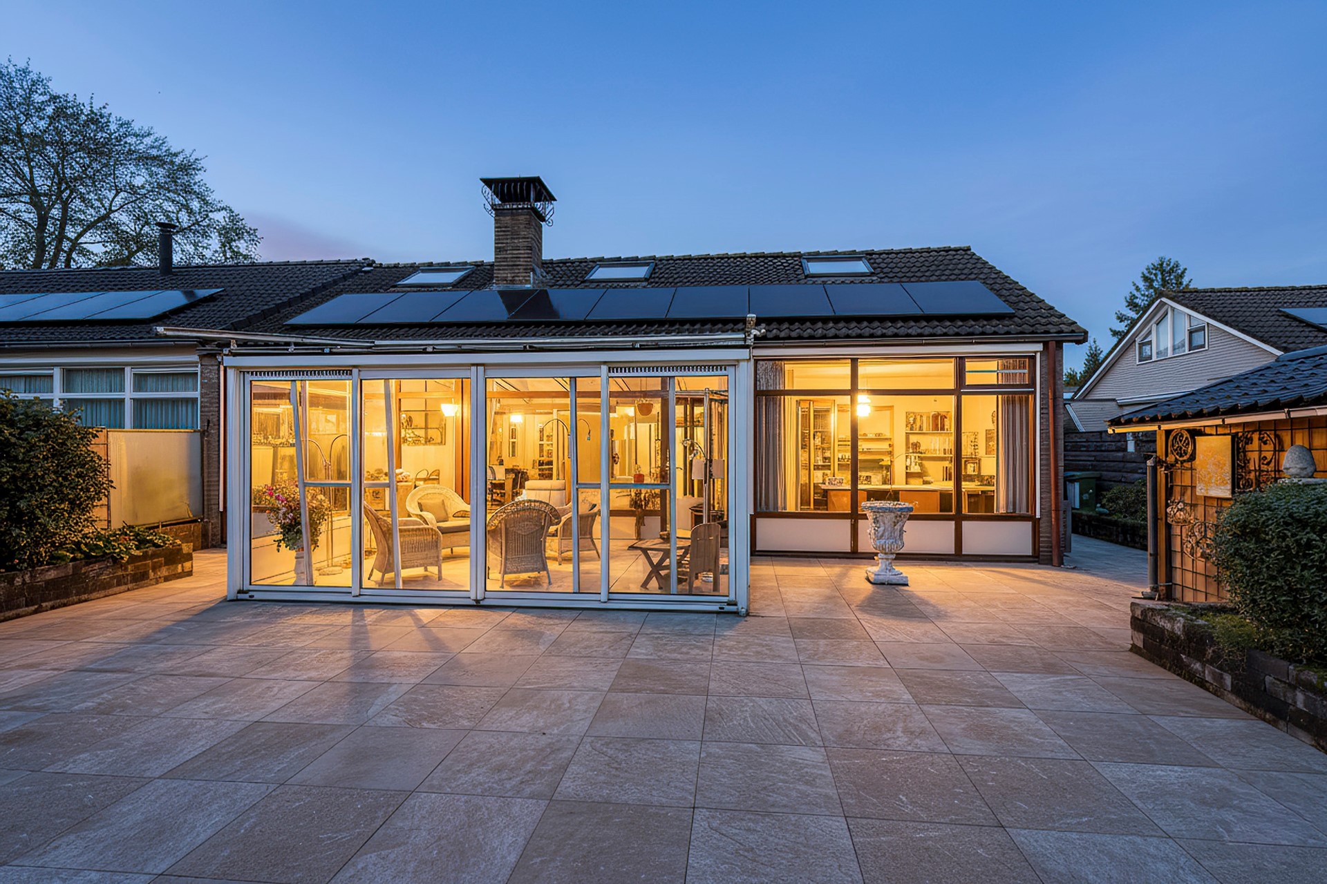Vanuit de living wandel je moeiteloos door naar de serre, een heerlijk verlengstuk van de living. Door de grote ramen voel je je als het ware één met de tuin. De groot formaat granieten tegels en de radiator zorgen voor een stijlvolle en comfortabele sfeer, waardoor je hier het hele jaar aangenaam kunt vertoeven. Op diverse posities zijn stopcontacten aanwezig, zodat je de ruimte gemakkelijk kunt inrichten en gebruiken zoals jij dat wilt. De hordeuren zorgen ervoor dat je insectenvrij kunt ventileren, terwijl het elektrisch bedienbare zonnescherm met zon- en windsensor beschutting en praktisch gemak biedt.