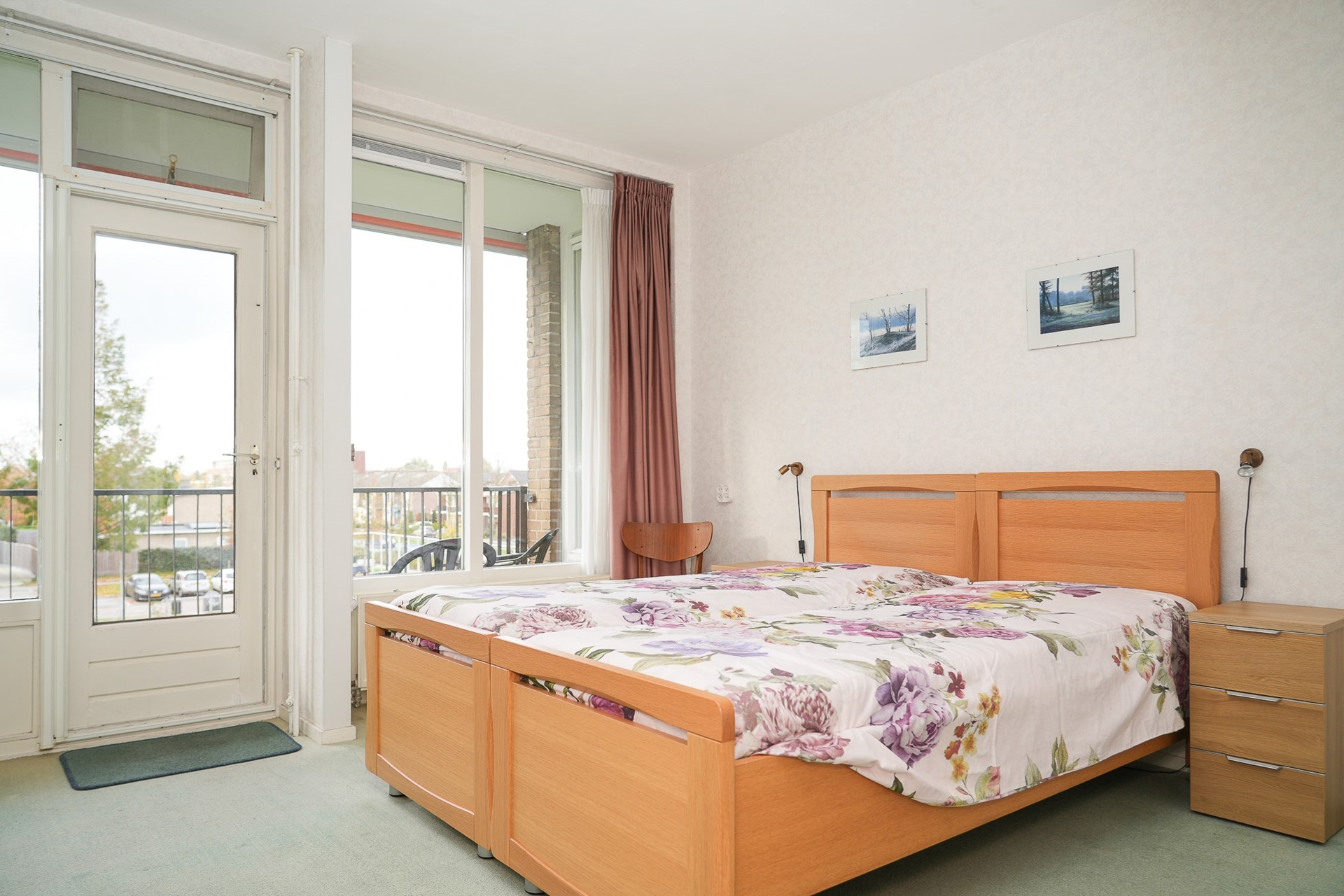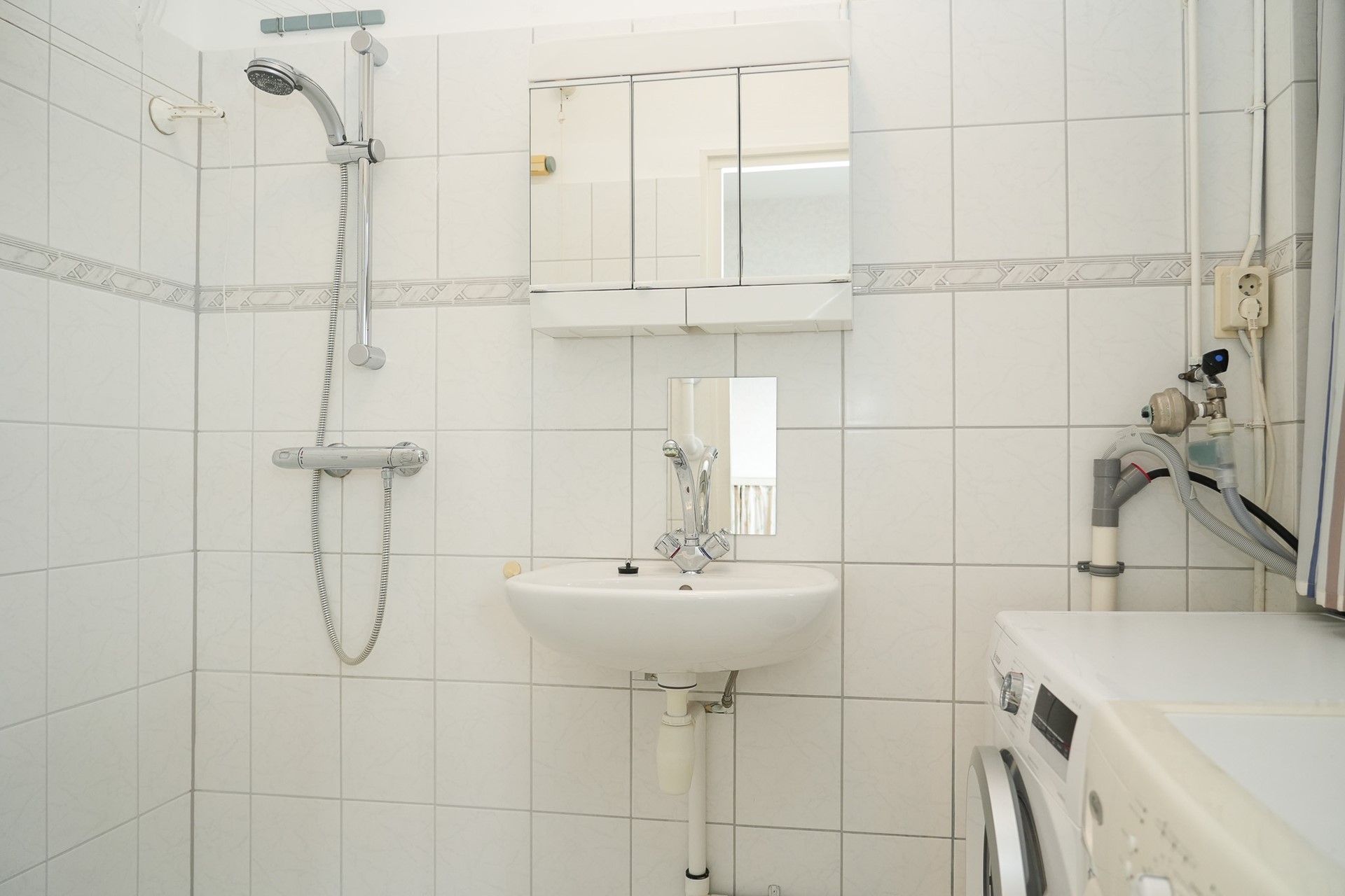 Het appartement beschikt over twee slaapkamers: een ruime kamer aan de voorzijde, met directe toegang tot het balkon én een tweede kamer die grenst aan de badkamer. De badkamer is eenvoudig van uitvoering en voorzien van een inloopdouche, wastafel en de aansluiting voor de wasmachine.