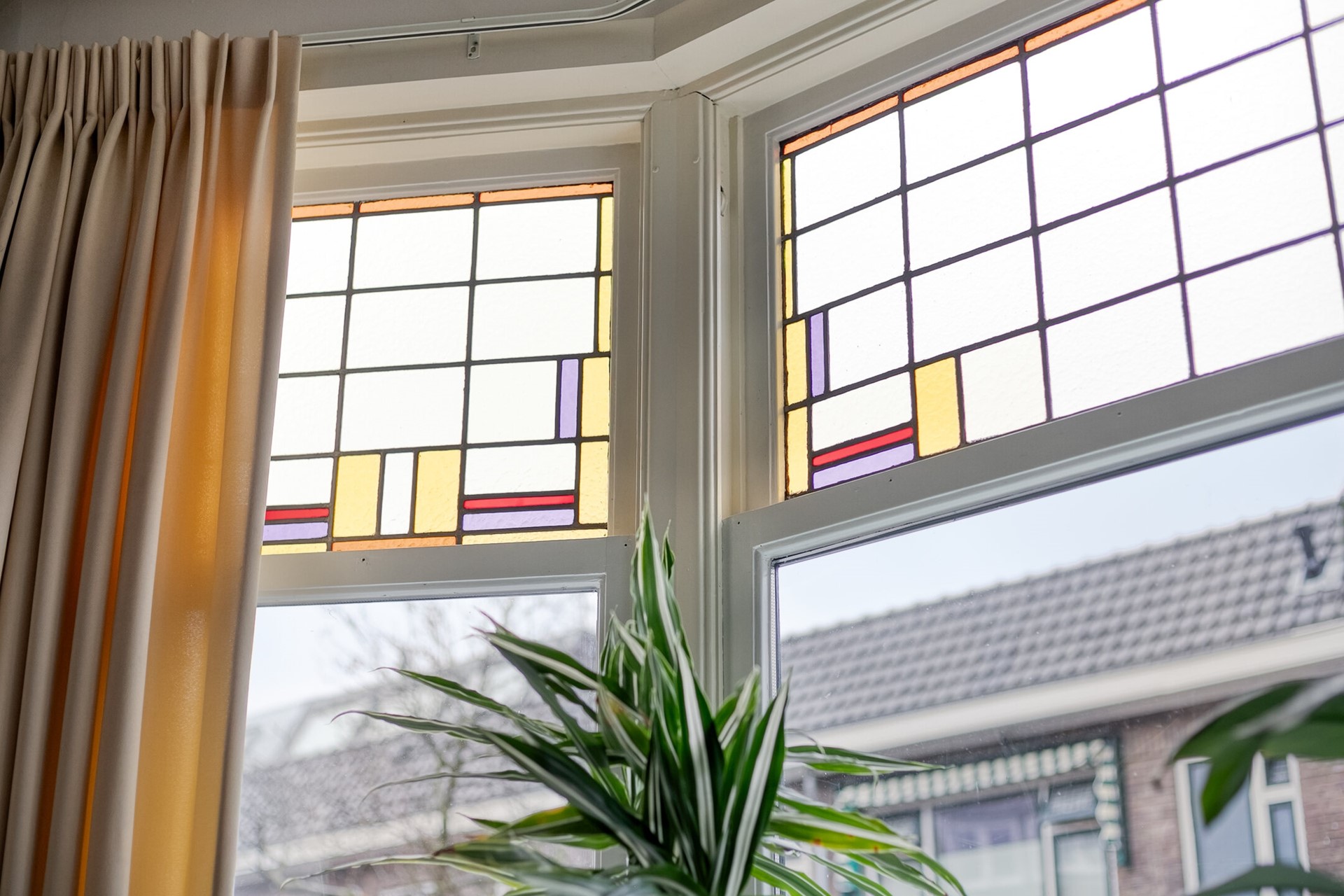 Spieghelstraat 4, Leiden is zo’n huis dat je al raakt vóórdat je binnen bent. Terwijl je de straat inloopt, voel je het meteen: karakter, ritme en allure. De fraaie jaren ’30-architectuur, de erkers, de rijke gevels en het glas-in-lood kondigen aan dat dit geen doorsnee tussenhuis is. Dit is een voormalige boven- en benedenwoning die is samengevoegd tot één volwaardige, indrukwekkende 8 kamer gezinswoning – een huis om van te dromen.
