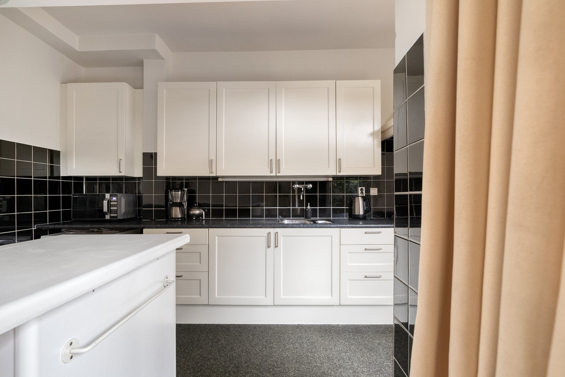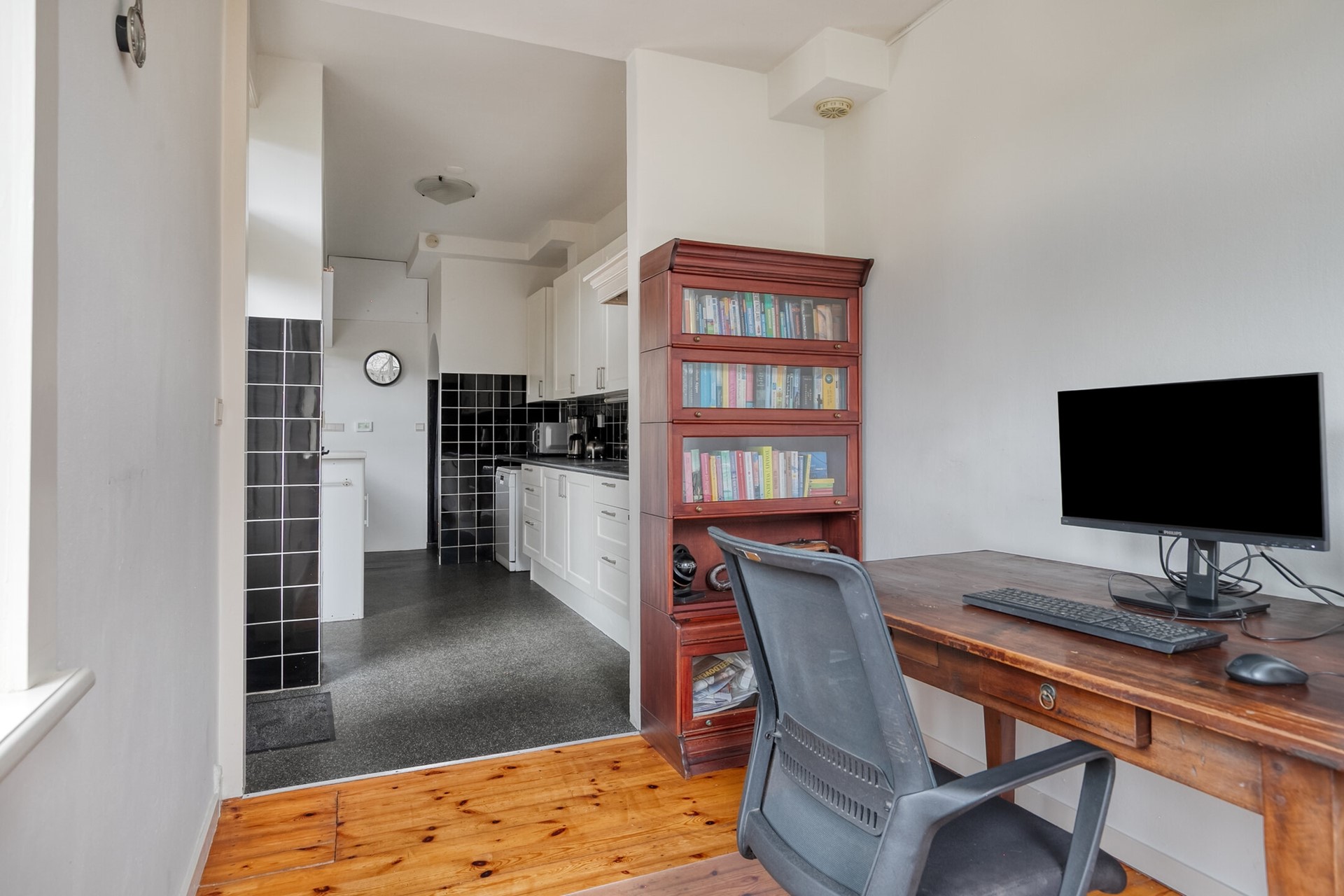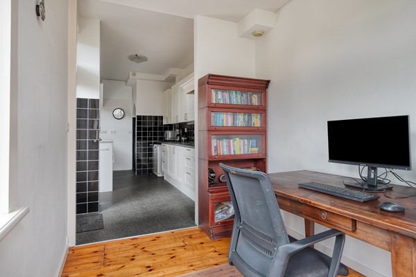 De open keuken is royaal opgezet, voorzien van diverse inbouwapparatuur en veel bergruimte. Aansluitend ligt de achtergelegen werkkamer van circa 8,5 m²: ideaal als thuiswerkplek, speelkamer, tv-kamer of juist een afgesloten keukenruimte. De keuze is aan jou.