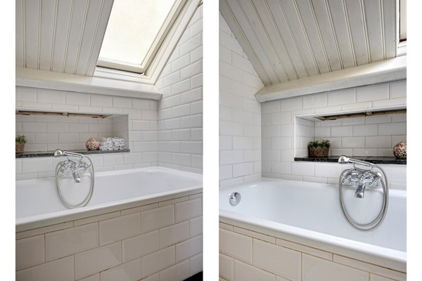De badkamer is centraal gelegen en voorzien van een douche, wastafel en een ligbad. Het toilet is separaat – beide klaar voor eventueel modernisering naar eigen smaak.