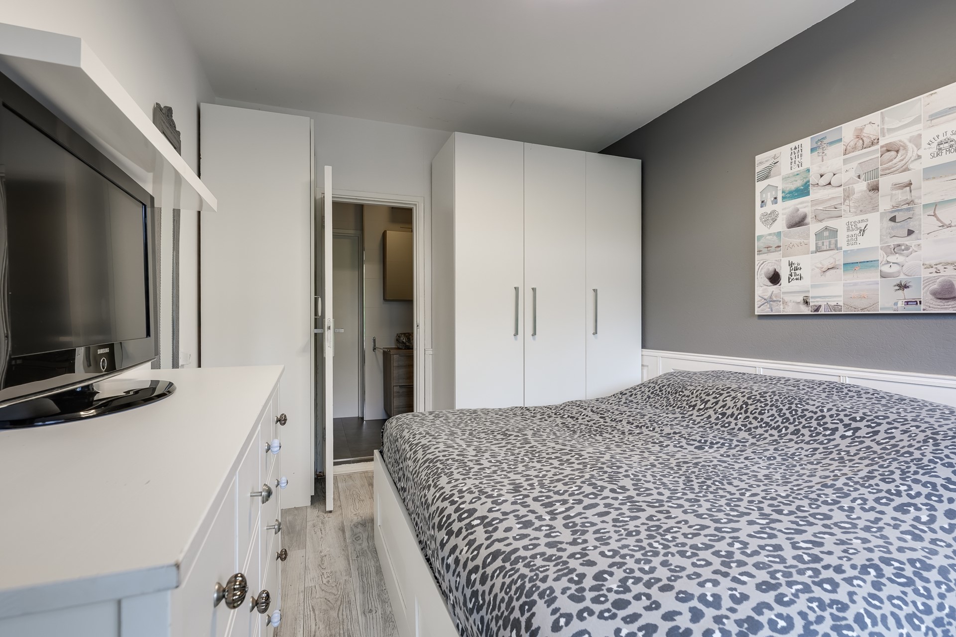 There are three bedrooms, making this apartment surprisingly complete. The main bedroom has direct access to the balcony, which offers a peaceful view over the greenery. The two additional rooms are ideal for children, working from home or guests.