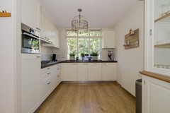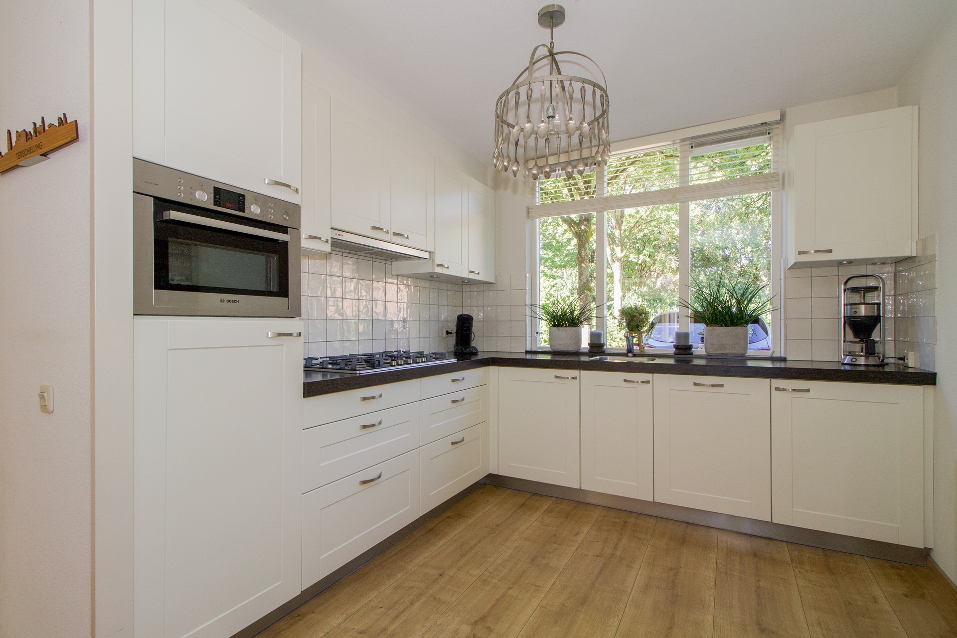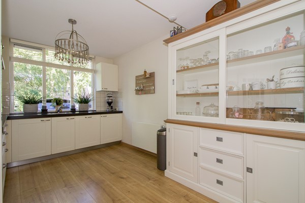 Aan de voorzijde bevindt zich de moderne open keuken, die is ingericht in een praktische L-opstelling. De keuken is voorzien van diverse inbouwapparatuur en biedt voldoende werk- en bergruimte. Dankzij de gunstige ligging aan de voorzijde heb je tijdens het koken leuk zicht op de straat.