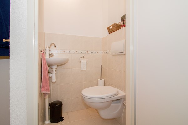 Aan de achterzijde, grenzend aan de woonkamer, ligt een bijkeuken die ideaal te gebruiken is als extra opslag. Vanuit de bijkeuken is er een directe toegang naar de achtertuin.