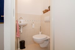 Via de entree kom je binnen in de hal met toegang tot de meterkast (MK), het toilet met fontein en de trapopgang naar de eerste verdieping. Vanuit de hal stap je de lichte woonkamer binnen, die dankzij de grote raampartijen en openslaande deuren naar de tuin een prettige, open sfeer heeft. De woonkamer biedt volop ruimte voor een gezellige zithoek en een royale eettafel.