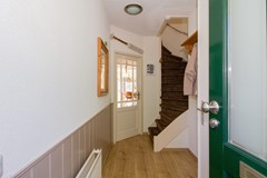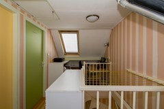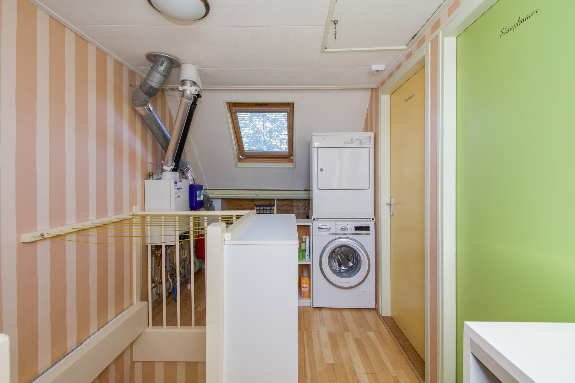 Via de vaste trap bereik je de tweede verdieping. Op de overloop is ruimte voor een werkhoek of extra kastruimte, en hier bevinden zich tevens de aansluitingen voor de wasapparatuur.