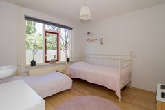 De twee slaapkamers aan de achterzijde zijn ideaal als kinderkamer, logeerkamer of thuiskantoor. Beide kamers beschikken over een prettig uitzicht op de tuinzijde en zijn voorzien van praktische knieschotten en bergruimte (VK).
