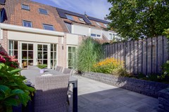 De woning beschikt over een fraai aangelegde achtertuin met een gunstige ligging op het oosten, waardoor je hier al in de vroege ochtend kunt genieten van de eerste zonnestralen. De tuin is verzorgd en onderhoudsvriendelijk aangelegd met een ruim bestraat terras, ideaal voor een grote eettafel of een comfortabele loungeset. Perfect om ’s ochtends rustig te ontbijten of in de loop van de dag te ontspannen in de zon.