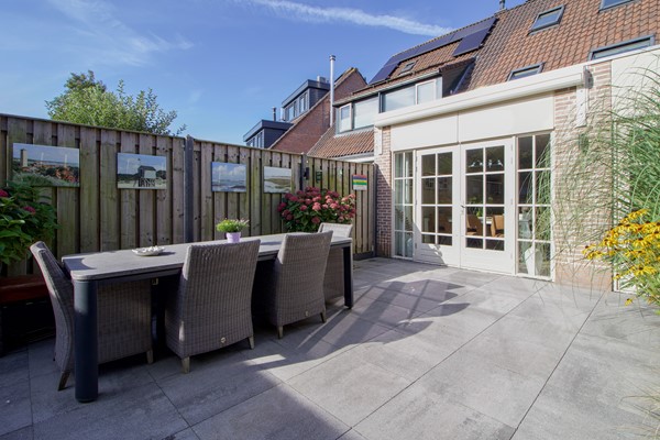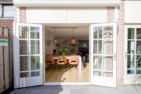 Dankzij de openslaande deuren vanuit de woonkamer vormt de tuin een natuurlijke verlenging van de leefruimte. Een heerlijke plek om te genieten van rust, zon en gezelligheid.