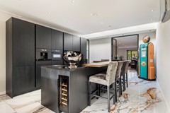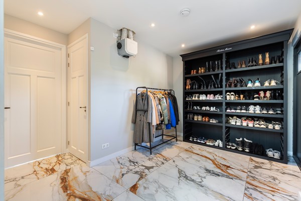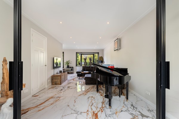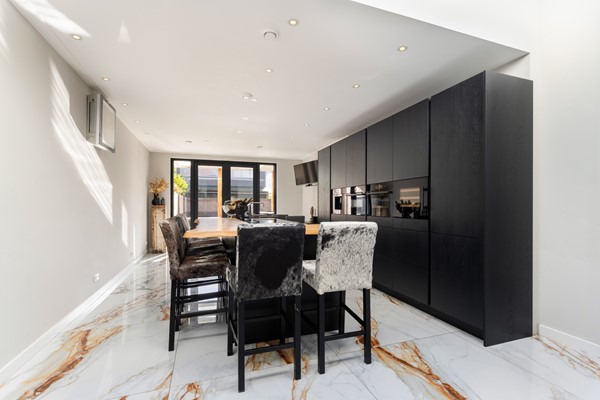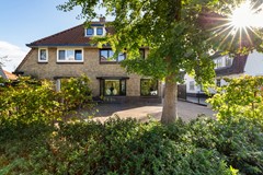 De royale entree aan de zijkant van het huis geeft toegang tot de woonkamer en wasruimte. De lichte en ruime woonkamer met erker is voorzien van een rustige werkhoek. Aan de achterkant van de woning bevindt zich de volledig nieuwe uitbouw met luxe woonkeuken. Vanuit de woonkeuken is de centrale hal te bereiken met apart toilet en doorgang naar de slaapkamer. De openslaande deuren in de woonkamer en slaapkamer bieden toegang tot de royale achtertuin met overkapping.