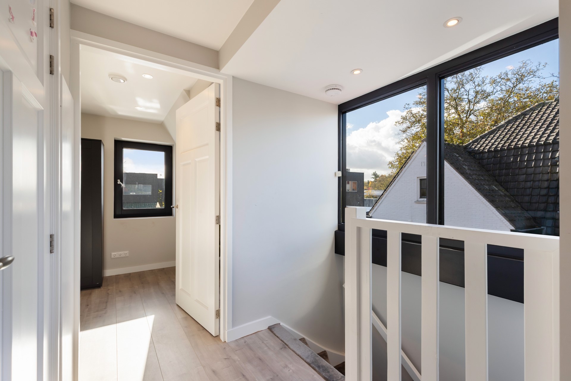 Het ruime trappenhuis en overloop geeft toegang tot drie in grootte variërende slaapkamers, toilet en badkamer met inloop douche en separaat bad. De hoofdslaapkamers beschikken over veel vaste kastruimte.