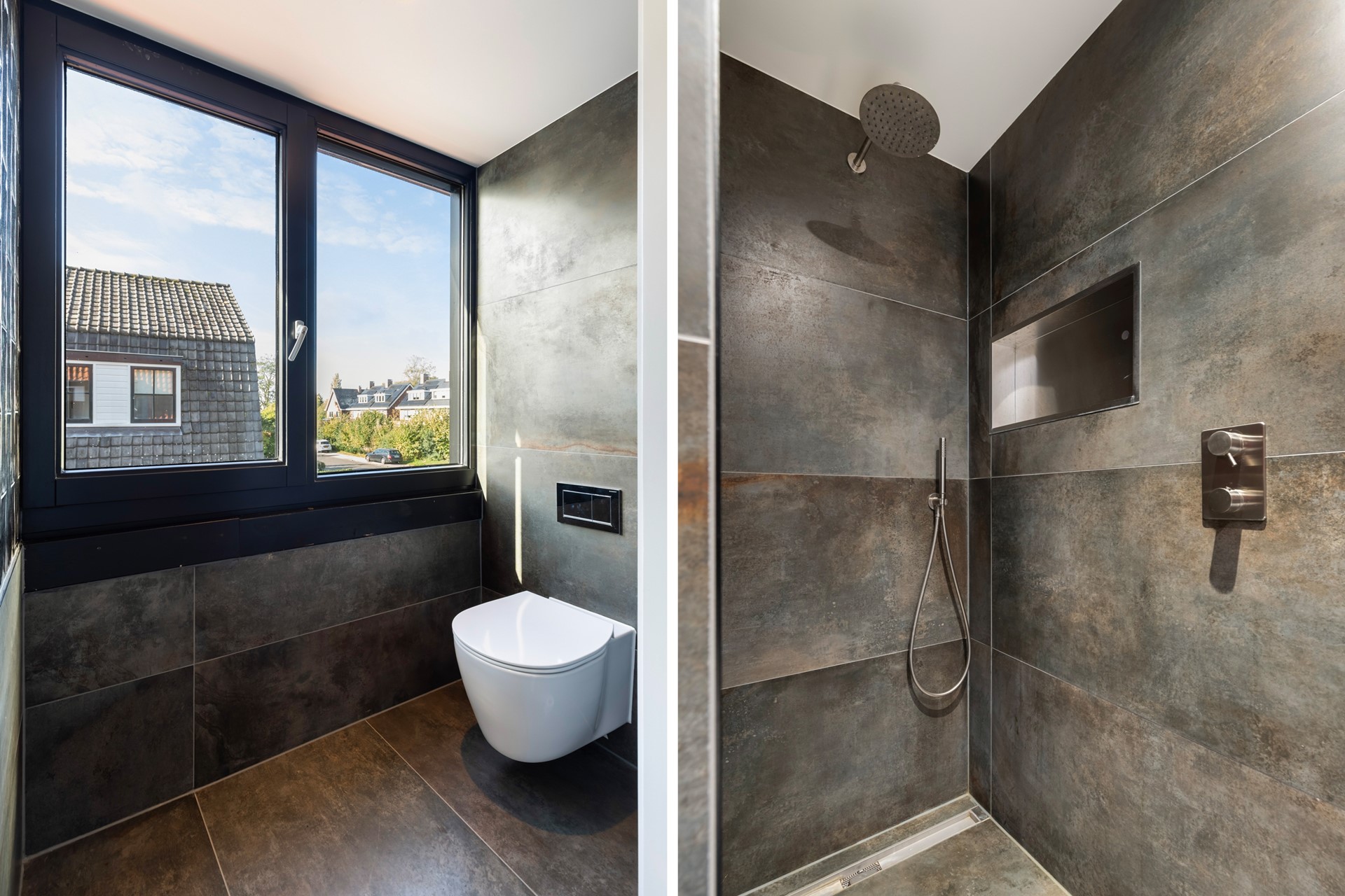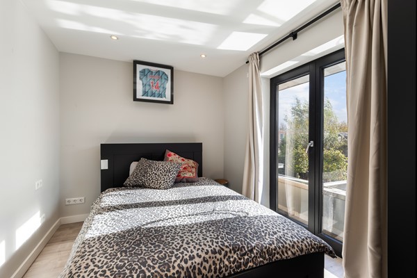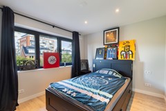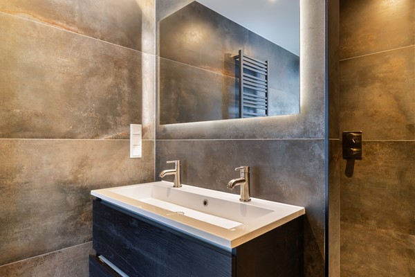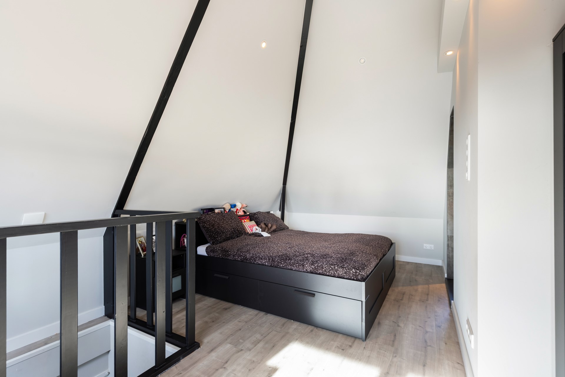 De ruime zolderetage is volledig gerenoveerd en geïsoleerd en bestaat uit een extra slaapkamer met eigen badkamer met inloopdouche en toilet.