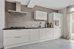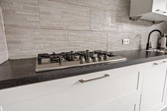 • Royale en moderne woonkeuken (2016) met diverse inbouwapparatuur zoals een vaatwasser, oven, 5-pits gaskookplaat, afzuigkap en koel-vriescombinatie;