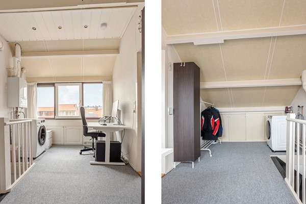 De eerste verdieping heeft 3 ruime slaapkamers waarvan de voorste grote slaapkamer een rolluik voor het raam heeft. De moderne en ruime badkamer is voorzien van een tweede toilet, inloopdouche met regendouche, dubbel wastafelmeubel, spiegelkast en spotjes in het plafond. De tweede verdieping heeft een grote overloop waar de wasmachine en droger staan en de opstelplaats voor de HR-ketel. Een ideale ruimte voor het drogen van de was en als werk- of speelplek. Tevens bevindt zich hier nog een ruime slaapkamer met ook een rolluik voor het raam en spotjes in het plafond.