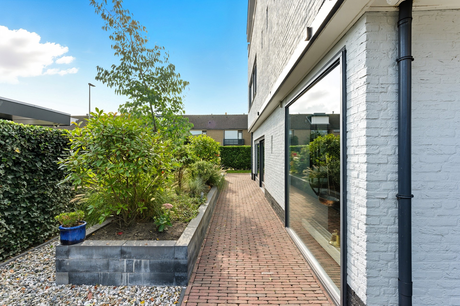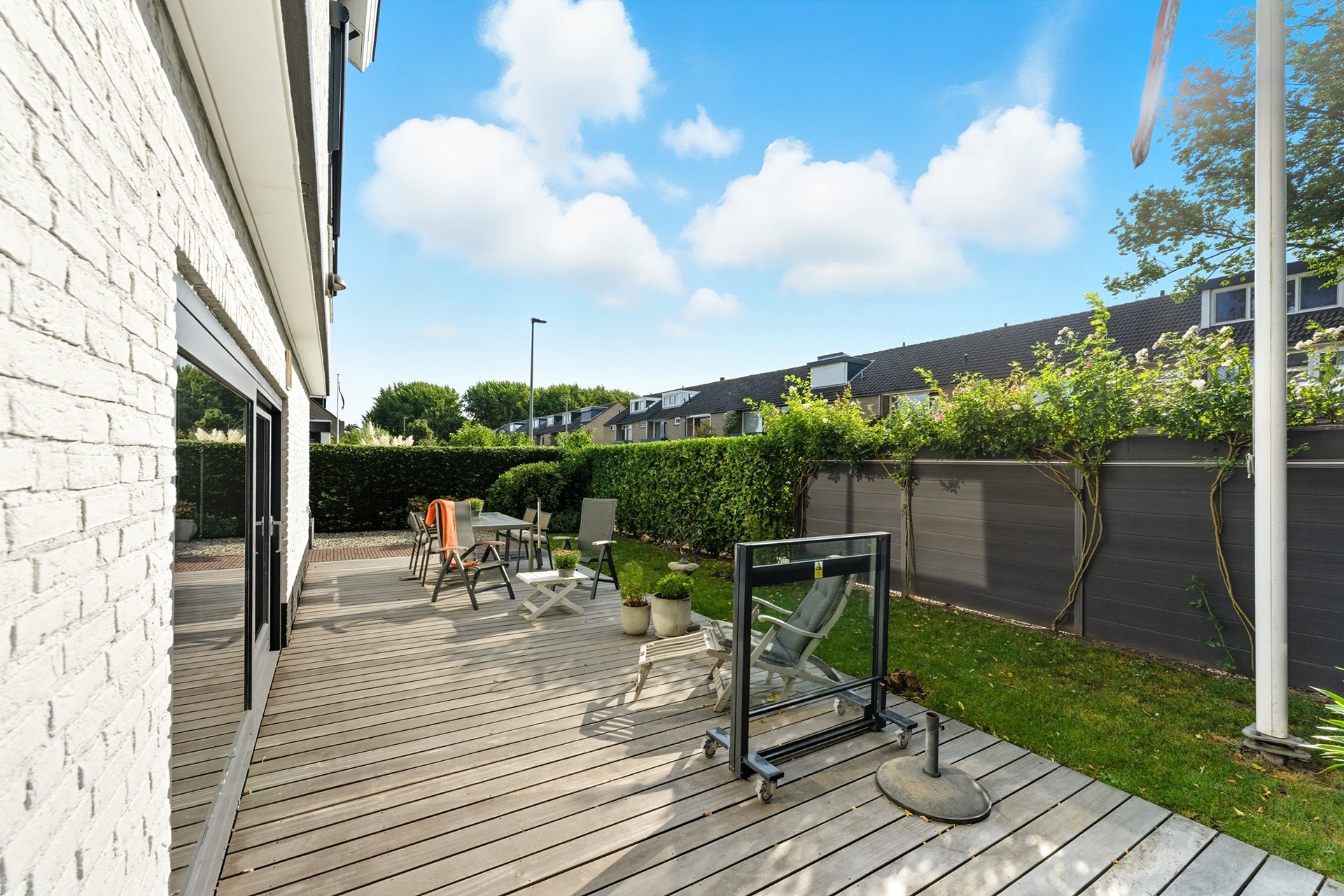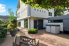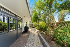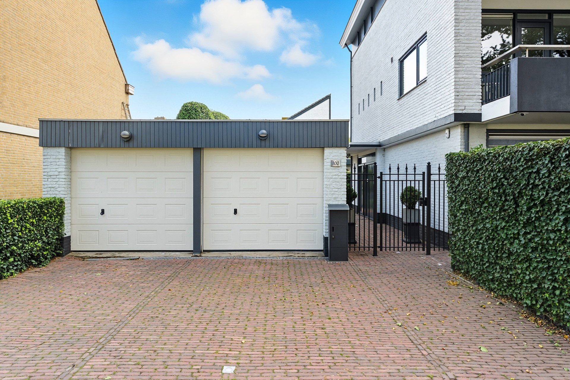 Rondom de woning ligt een fraaie, groene en privacyvolle tuin met meerdere terrassen. Achter de woning staat de dubbele garage met plek voor twee auto’s en veel berging. Voor de garage zijn twee extra parkeerplekken aanwezig.