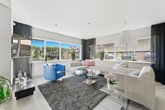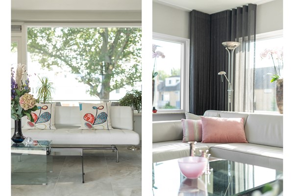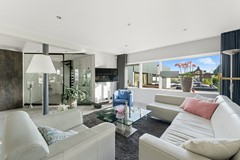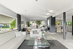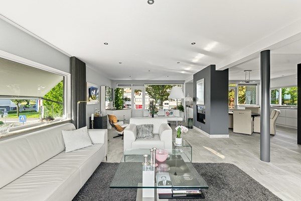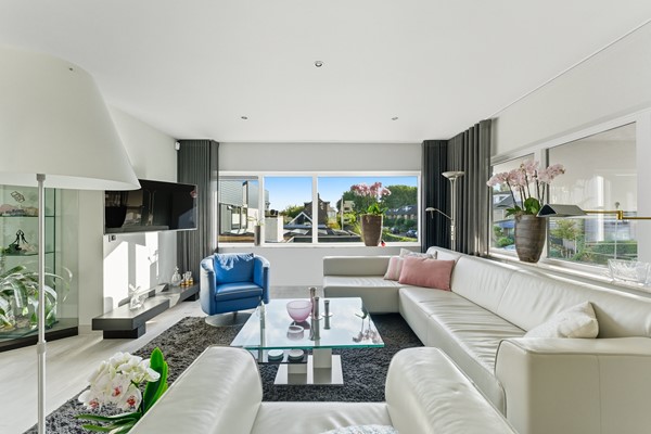 7. Grote, lichte woonkamer met panoramisch uitzicht over de Nieuwe Waterweg