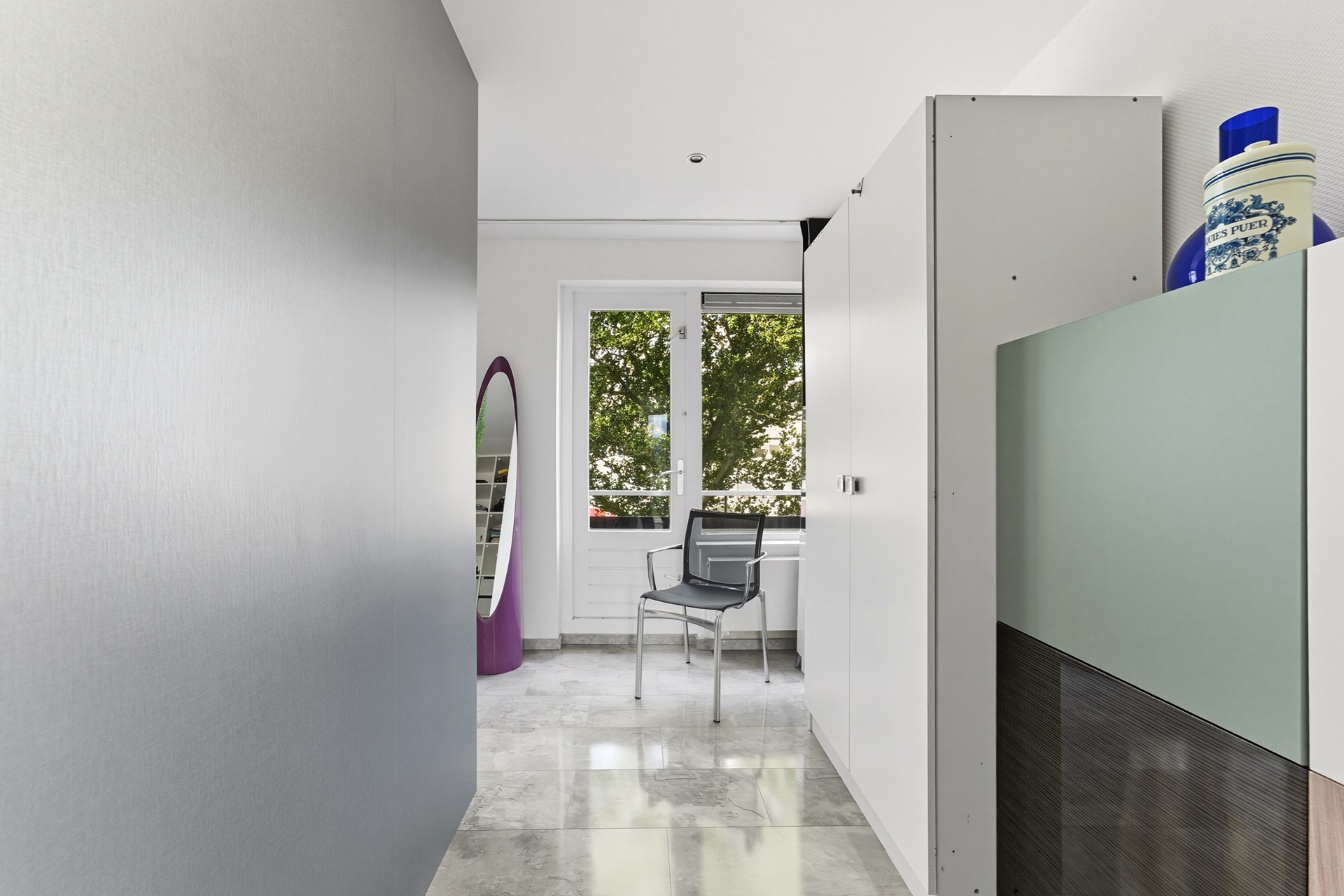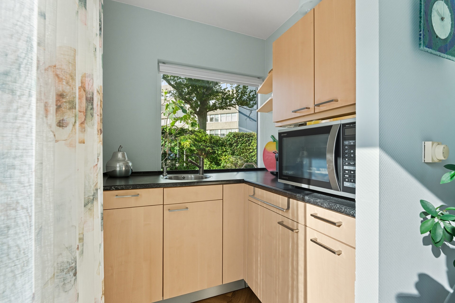 Een prachtige lichte leefetage met hal, luxe toilet, open keuken en een woonkamer met weids uitzicht over de Nieuwe Waterweg. De moderne gashaard vormt de sfeervolle scheiding tussen wonen en koken. De keuken (2022) is uitgerust met o.a. een NEFF-combioven, magnetron, inductiekookplaat, vaatwasser en granieten blad. Via de woonkamer en keuken bereik je het fijne balkon met veel privacy. De betonlook plavuizen met vloerverwarming maken deze verdieping stijlvol én comfortabel.