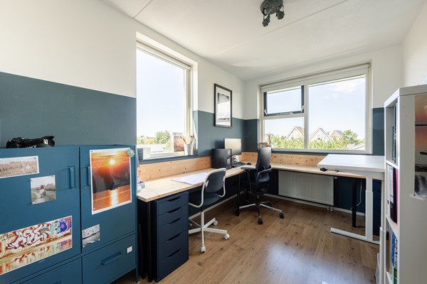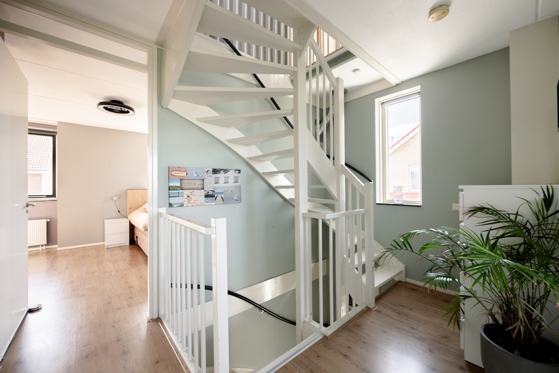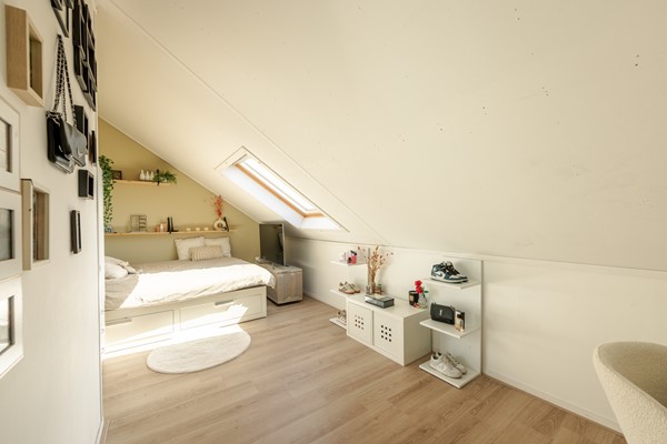 Via een vaste trap bereik je de tweede verdieping met nog twee slaapkamers, een bergruimte en een nieuwe Atag cv-ketel (2023).