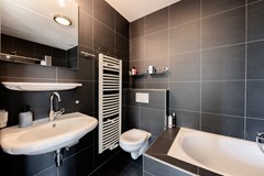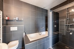 Op de eerste verdieping kom je via de overloop in drie slaapkamers. De badkamer heeft een ligbad, inloopdouche, wastafel, wandcloset en vloerverwarming.