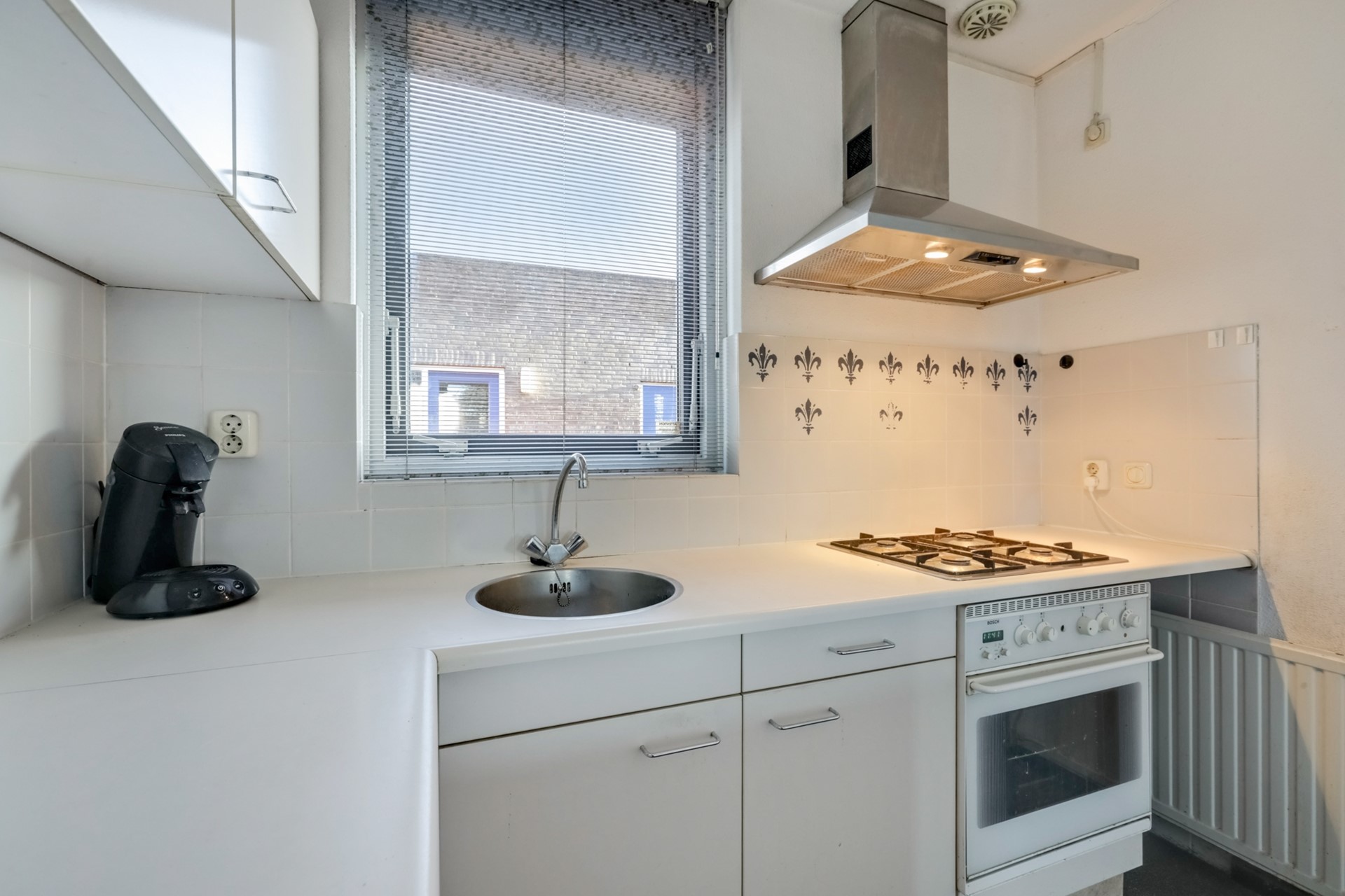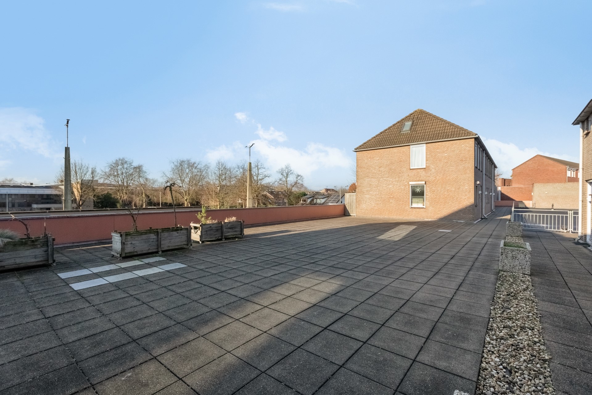 De gedateerde keuken, met een oppervlakte van ongeveer 5 m² is uitgerust met diverse inbouwapparatuur. Het omheinde dakterras, dat op het zuidwesten ligt, is voorzien van betontegel, voldoende ruimte voor een gezellig zitje en diverse plantenbakken waardoor het een gezellige buitenplek zal zijn. Van hieruit heb je een mooi uitzicht over de rijksweg en het dorpsplein van Malden.