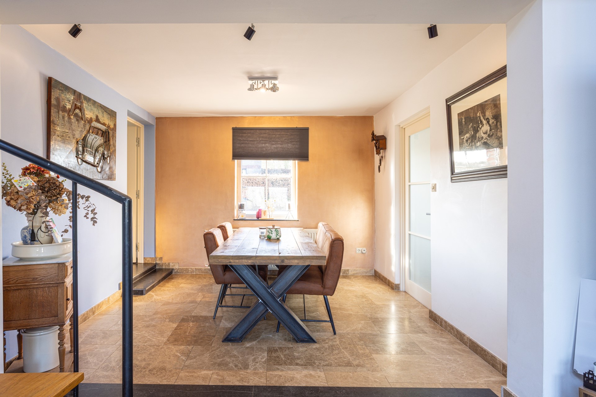 Het grote raam zorgt voor een prettige lichtinval en in het plafond zijn inbouwspots aangebracht.