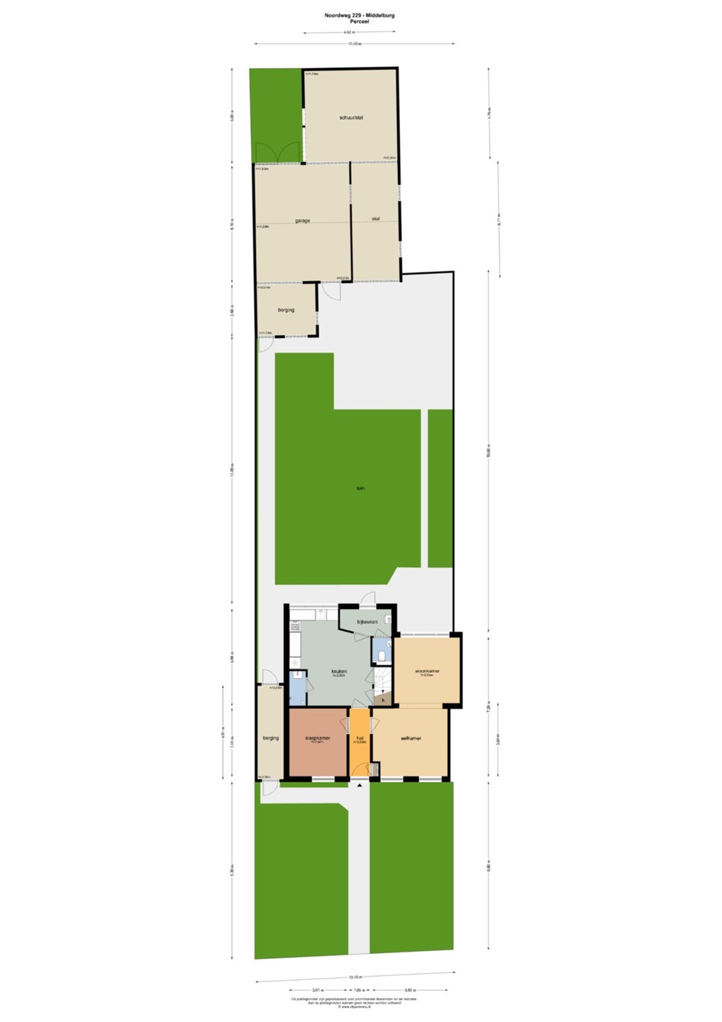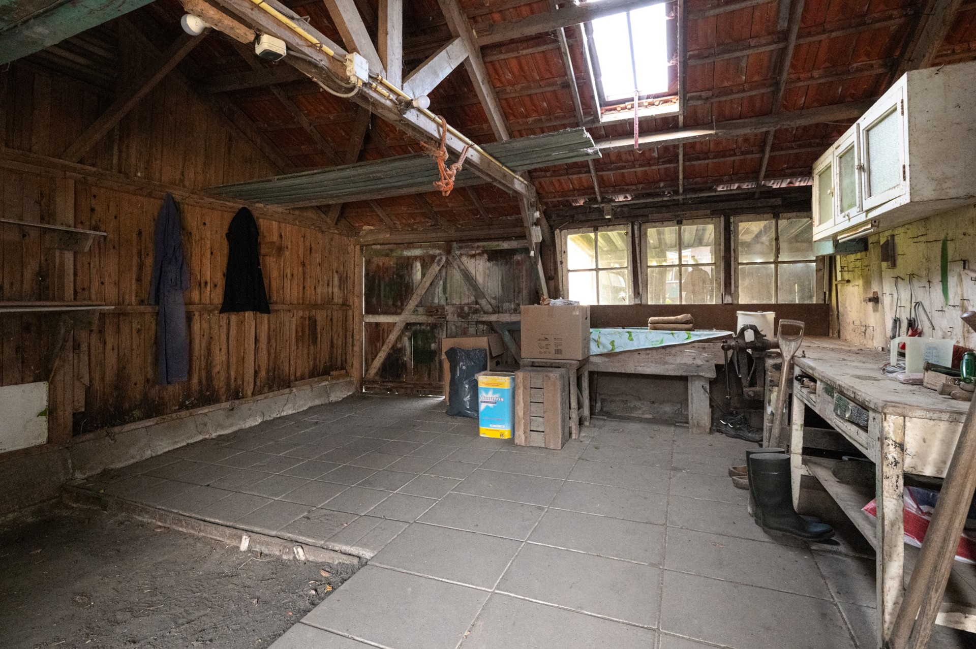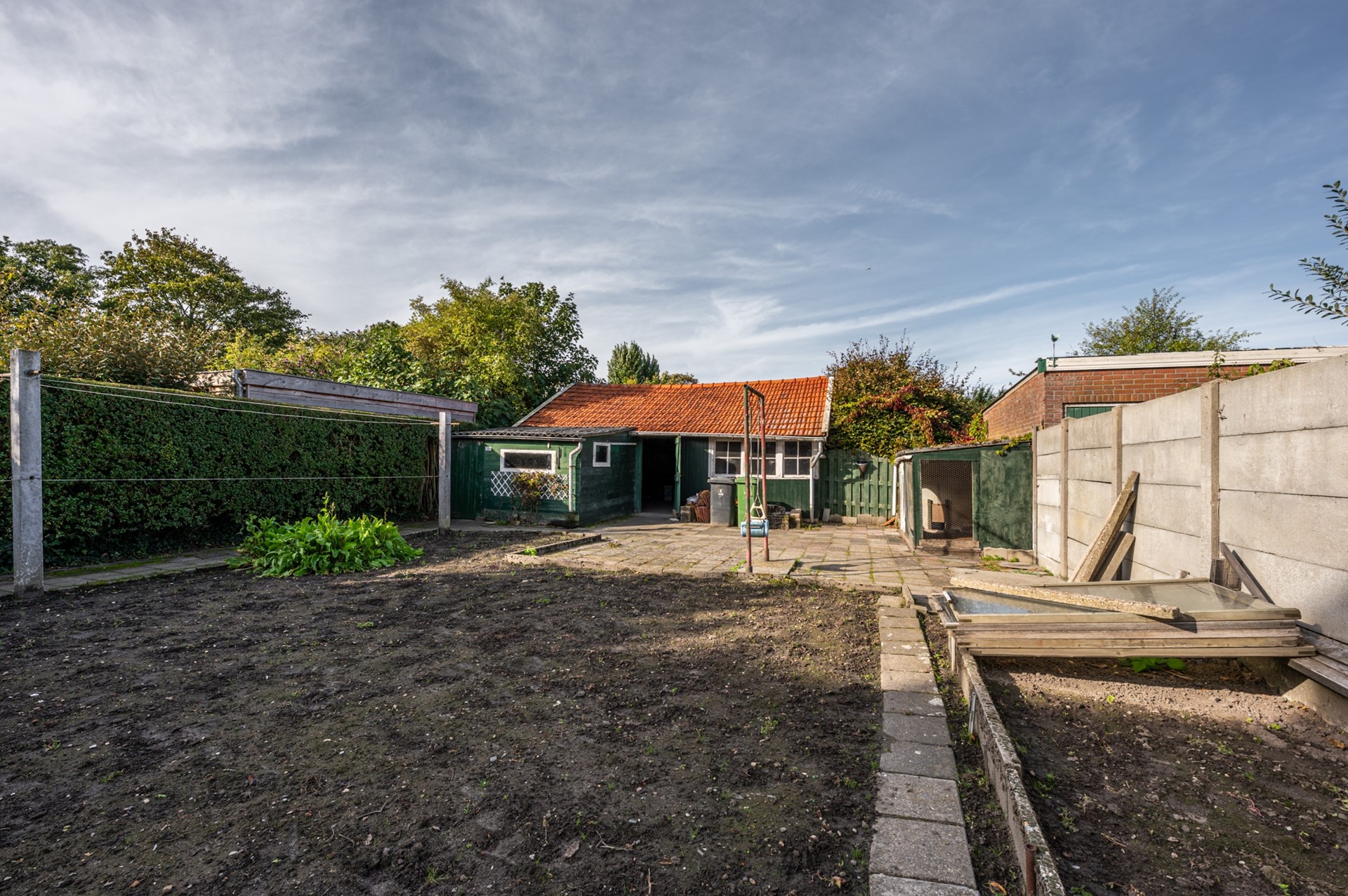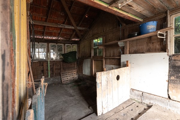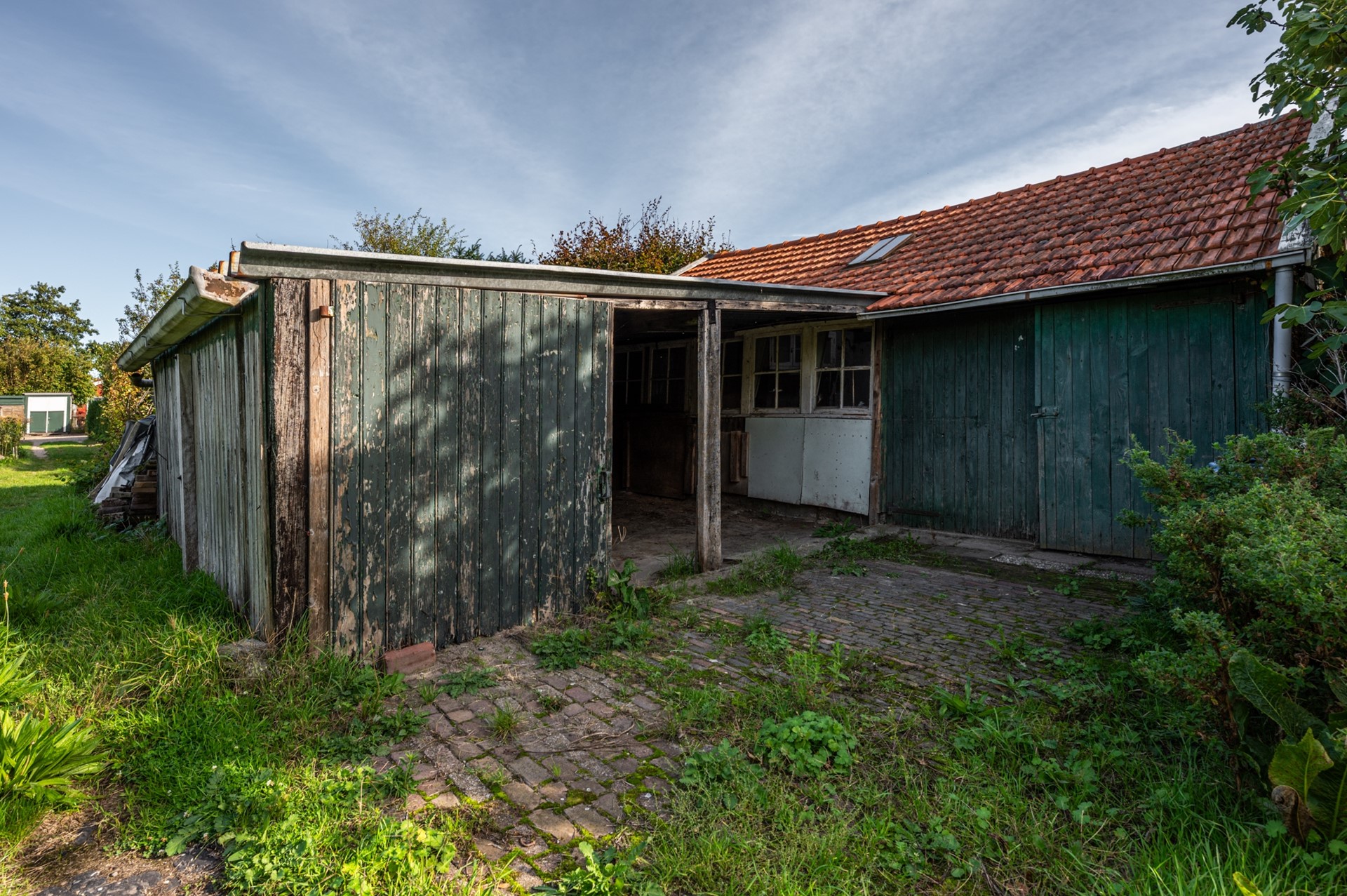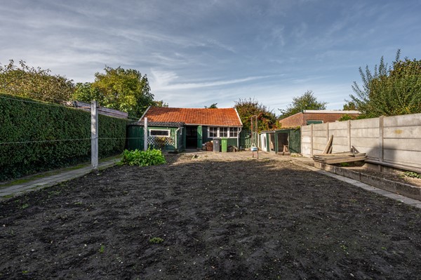 De woning wordt omgeven door een ruime tuin met volwassen beplanting, waarin u in alle rust kunt genieten van het buitenleven. In de tuin bevindt zich een grote schuur, ideaal voor hobby, opslag of eventueel het realiseren van een werkruimte. Daarnaast is er een poort naast de woning die directe toegang geeft tot de tuin.