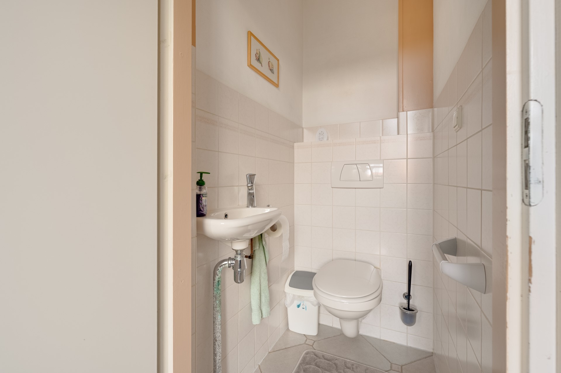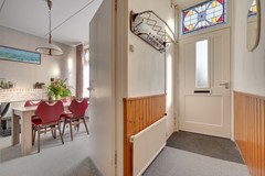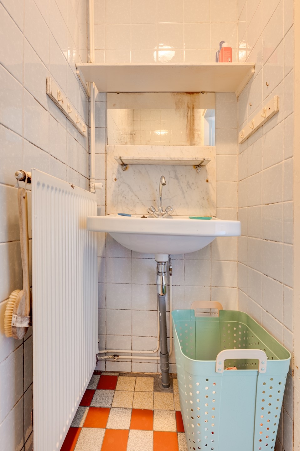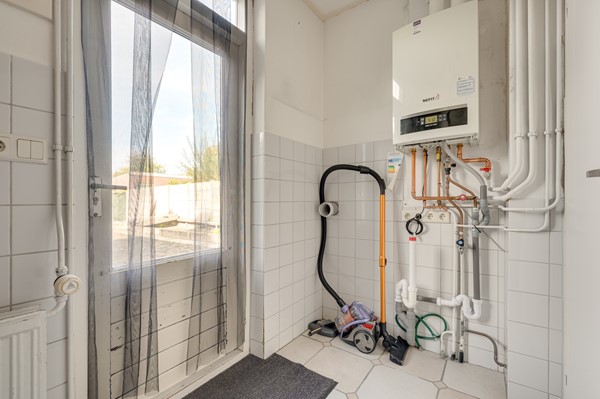 Begane grond: hal met ruime doorzon woonkamer, slaapkamer, gesloten keuken en bijkeuken met toilet en wasmachine aansluiting. Hier hangt ook de combiketel.