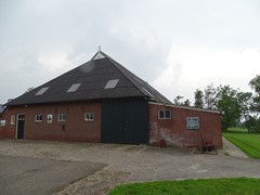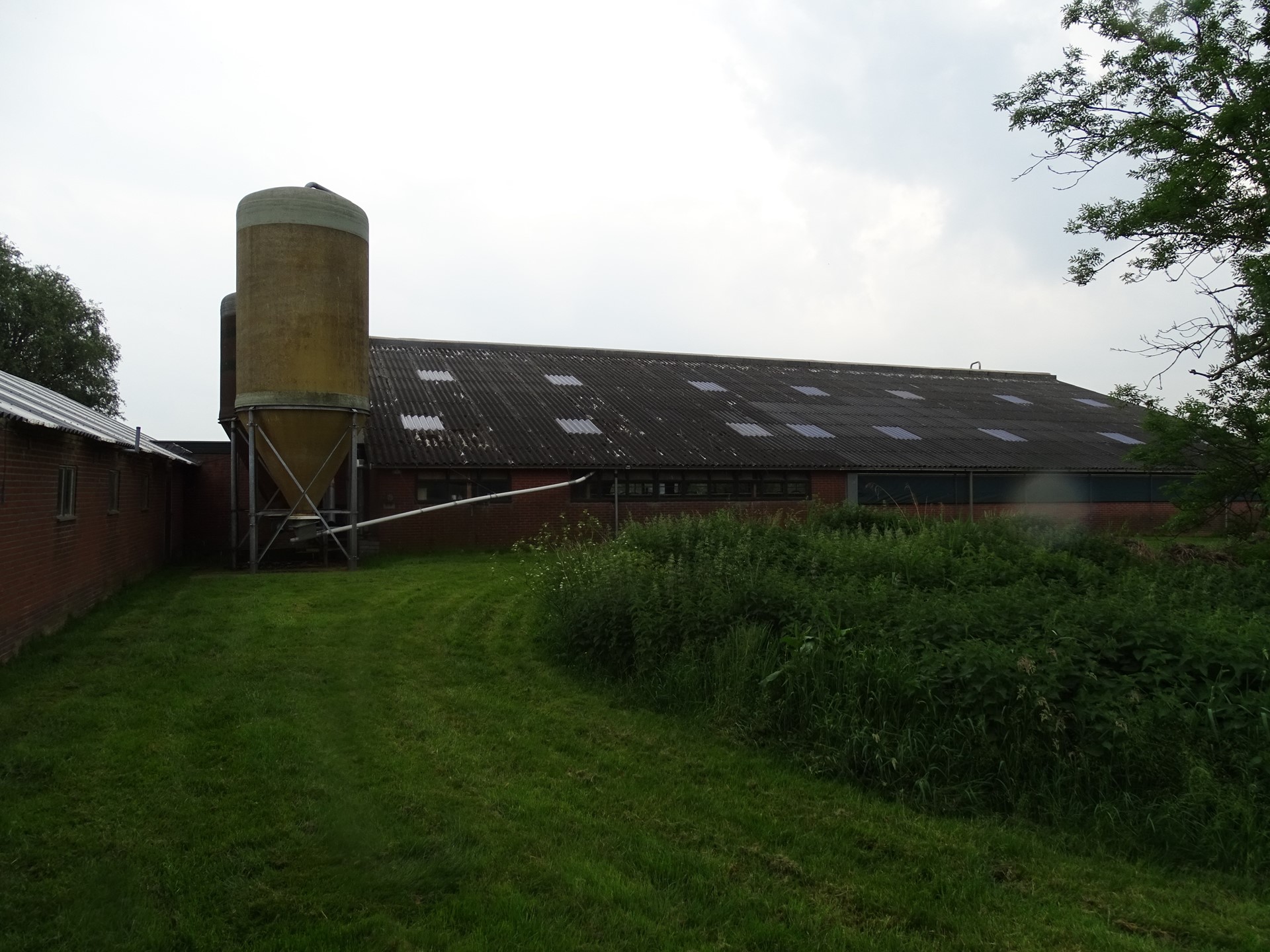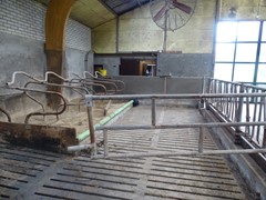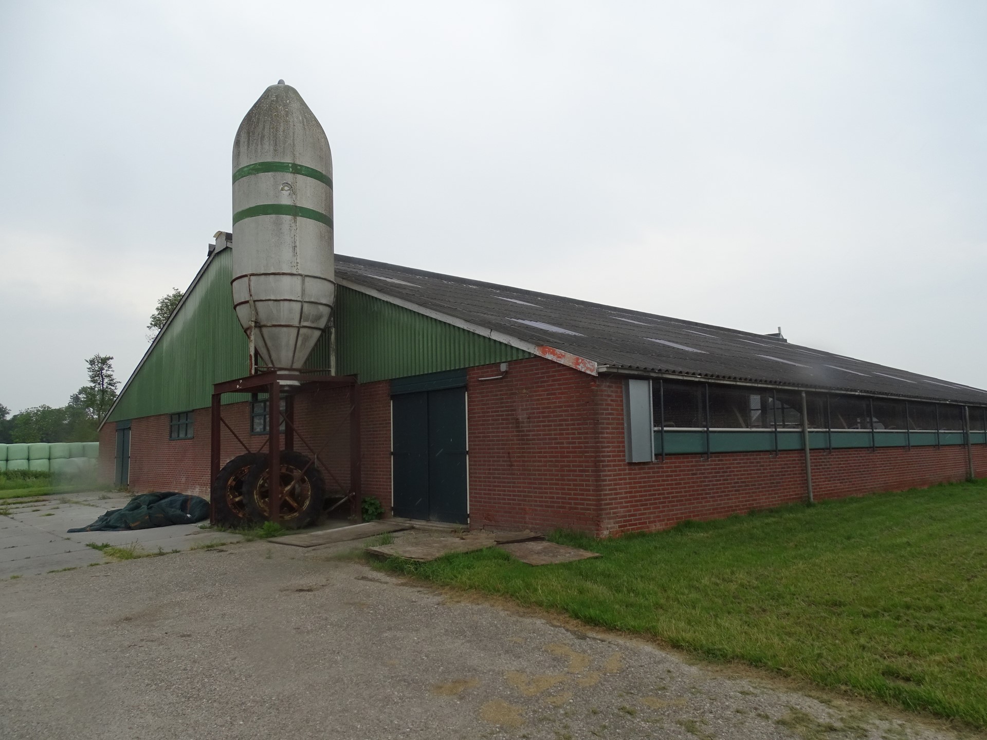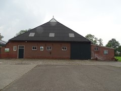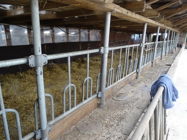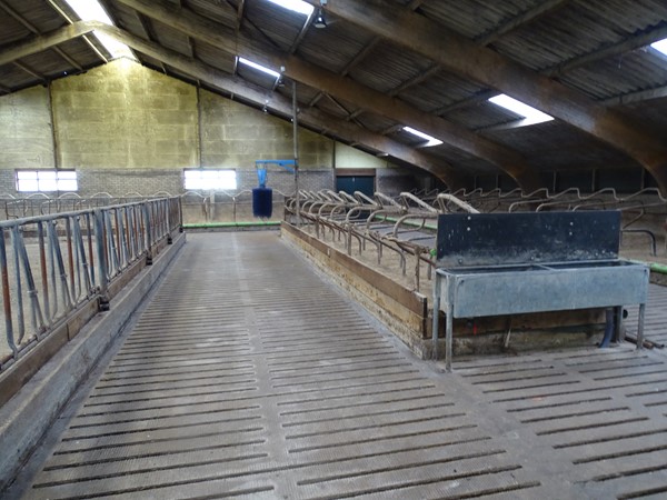Op het erf bevindt zich een voormalige ligboxenstal, gebouwd in U-vorm en voorzien van een brede voergang van circa 5 meter. De stal maakte voorheen deel uit van een melkveebedrijf, maar is inmiddels niet meer in gebruik voor de melkveehouderij.